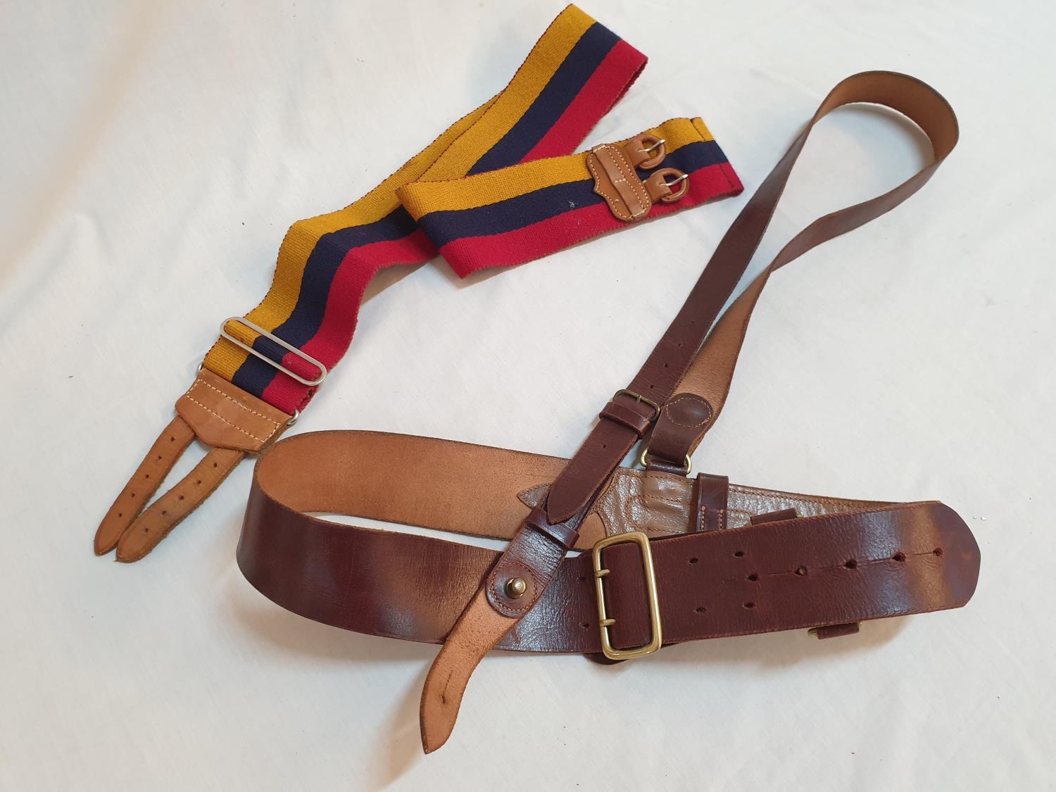 2 x Army Belt; British Army Genuine Stable Belts, Royal Army Medical and Leather Sam Browne Belt