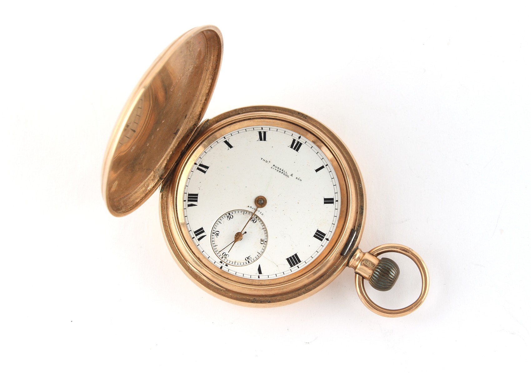 Property of a deceased estate, a private collection of watches - an early 20th century 9ct gold full hunter cased pocket watch, keyless wind, the dust cover and suspension ring also 9ct gold, glass missing, approximately 114.6 grams, 53mm diameter, appears to be working but no guarantees are given.
