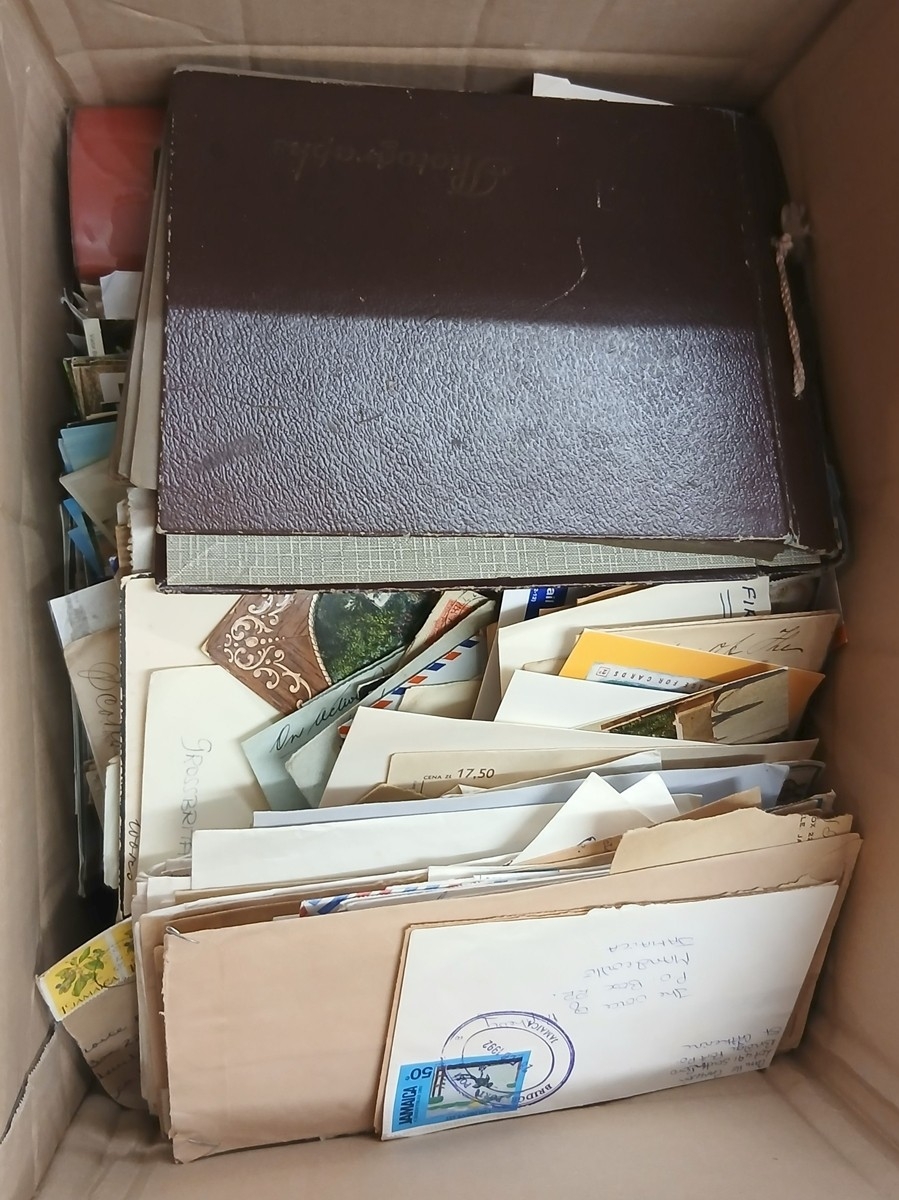 Stamps - WORLD Box with many Postcards, philatelic and commercial covers.