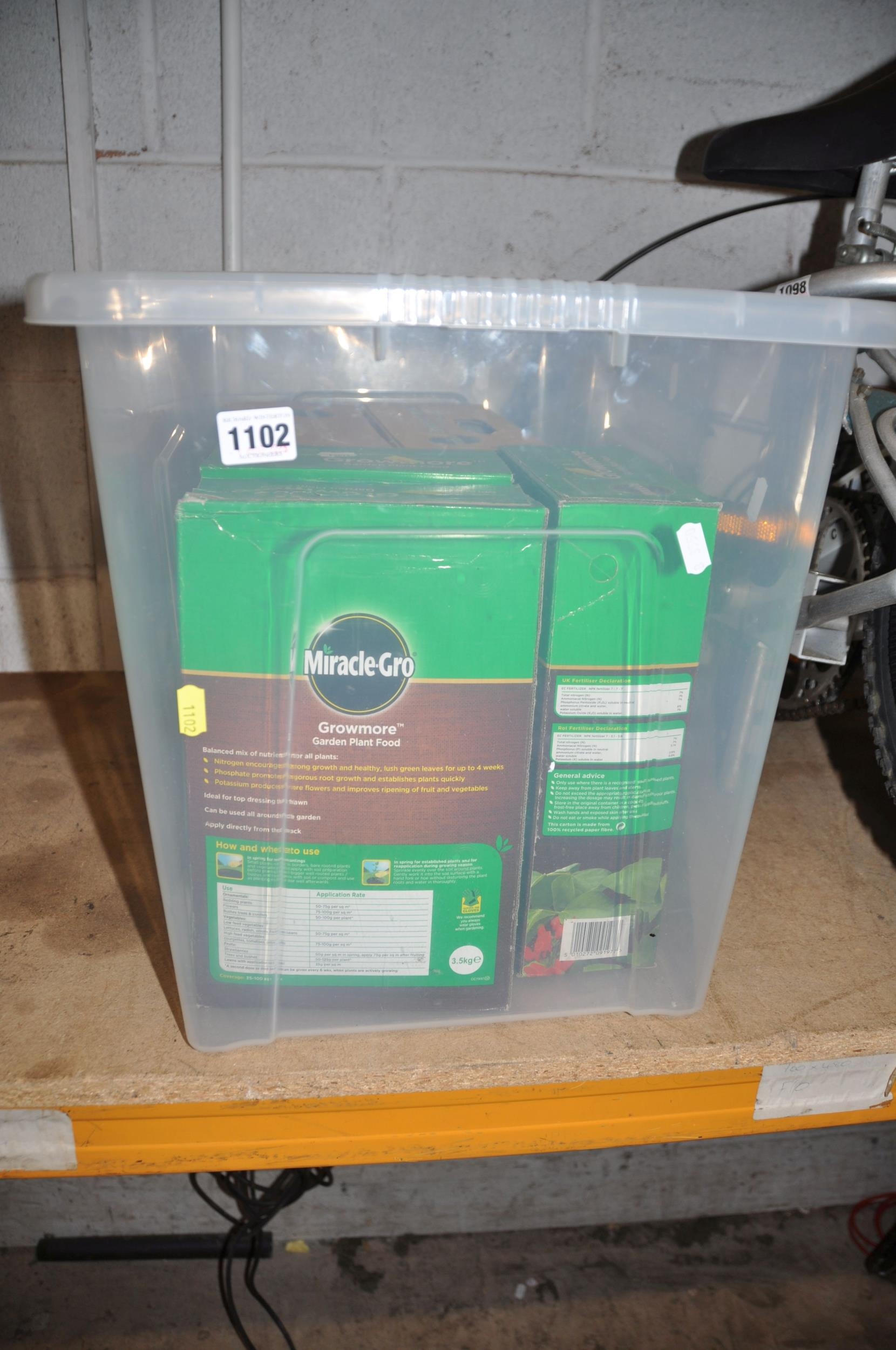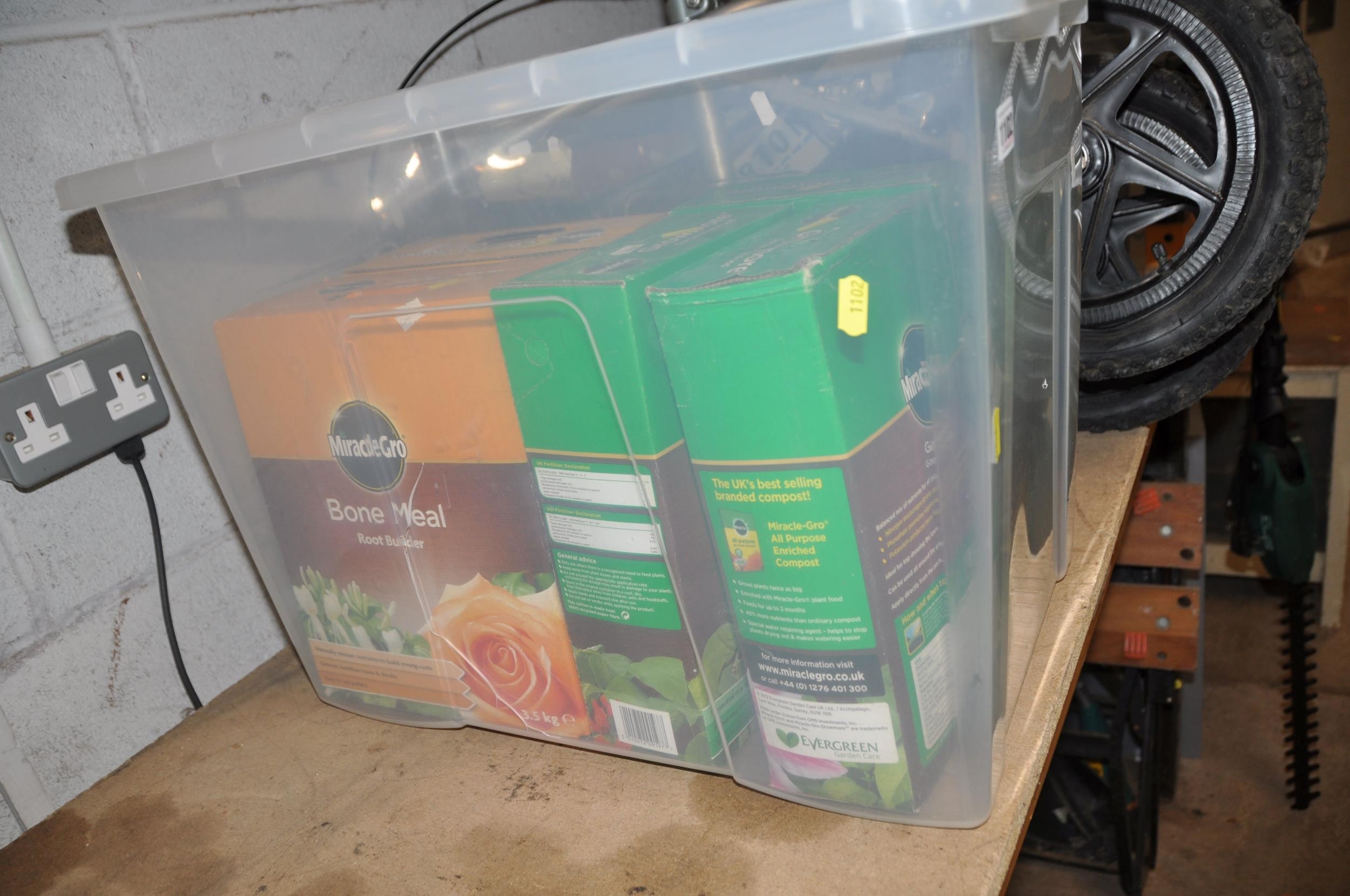 A BOX CONTAINING UNOPENED BOXES OF MIRACLE PRODUCTS comprising of three 3.5kg boxes of Growmore, a box of Chicken Manure and a box of Bone Meal (5)