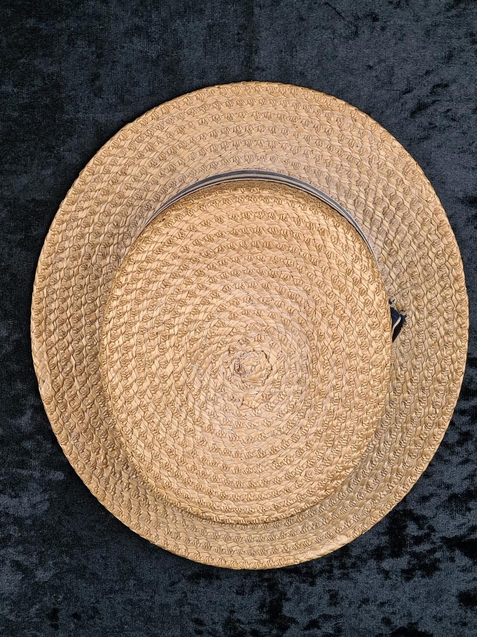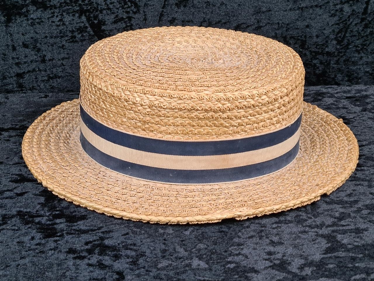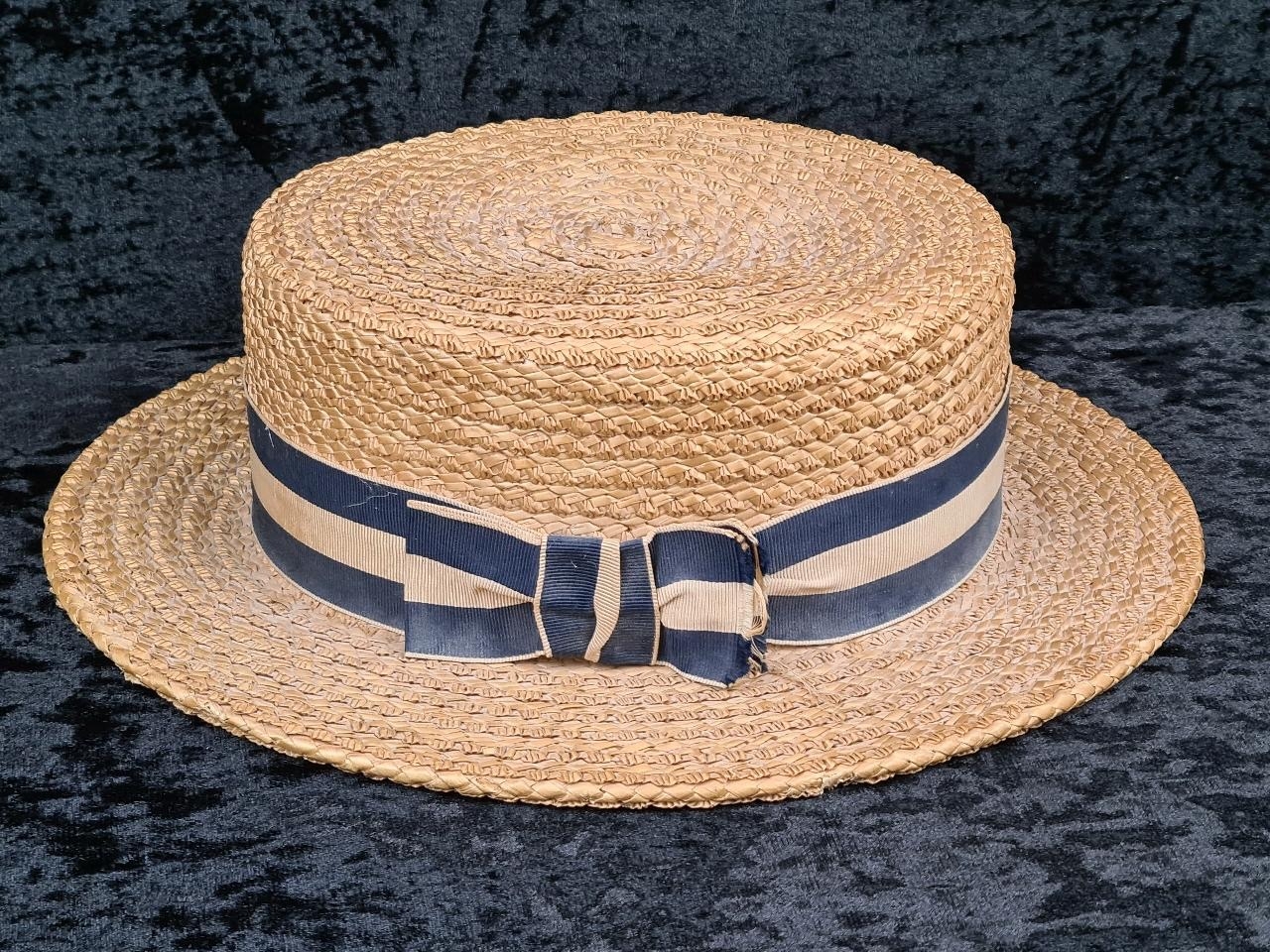 Stylish straw boater hat from the early-to-mid 20th century,...
