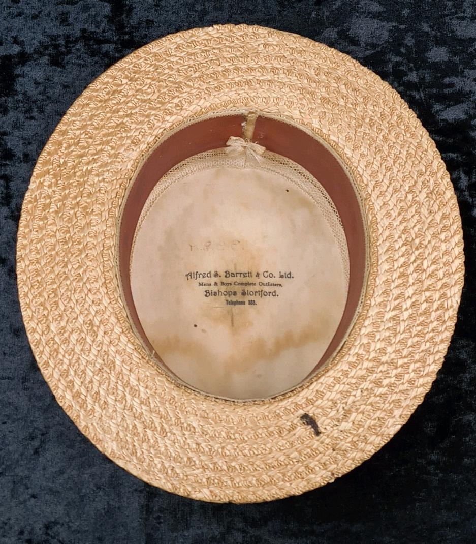 Stylish straw boater hat from the early-to-mid 20th century, from Alfred & Barrett & Co. Ltd - the complete outfitters, don’t you know!