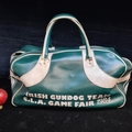 A very retro O'Neills green and white leather carrier bag reading 'Irish Gundog Team C.L.A. Game Fair 1984'.
