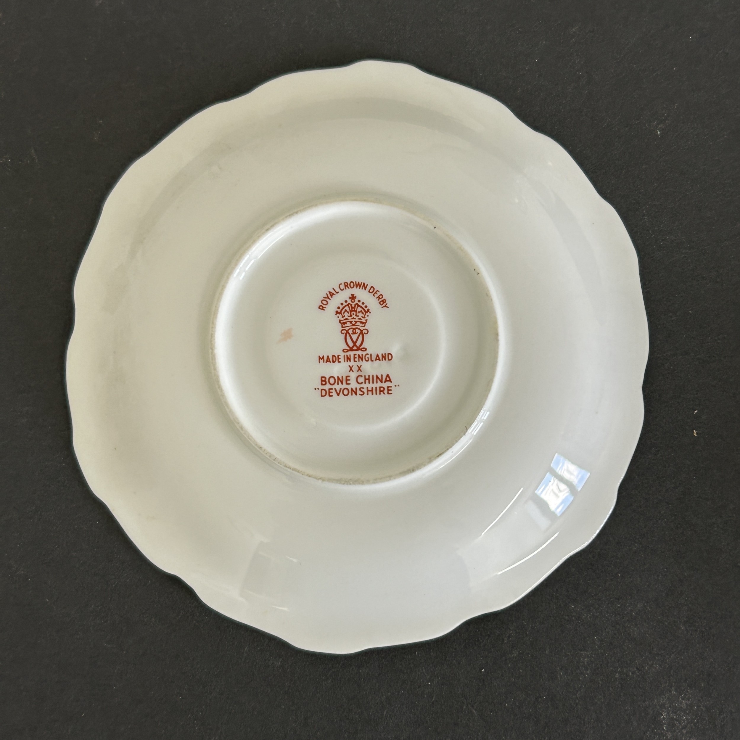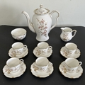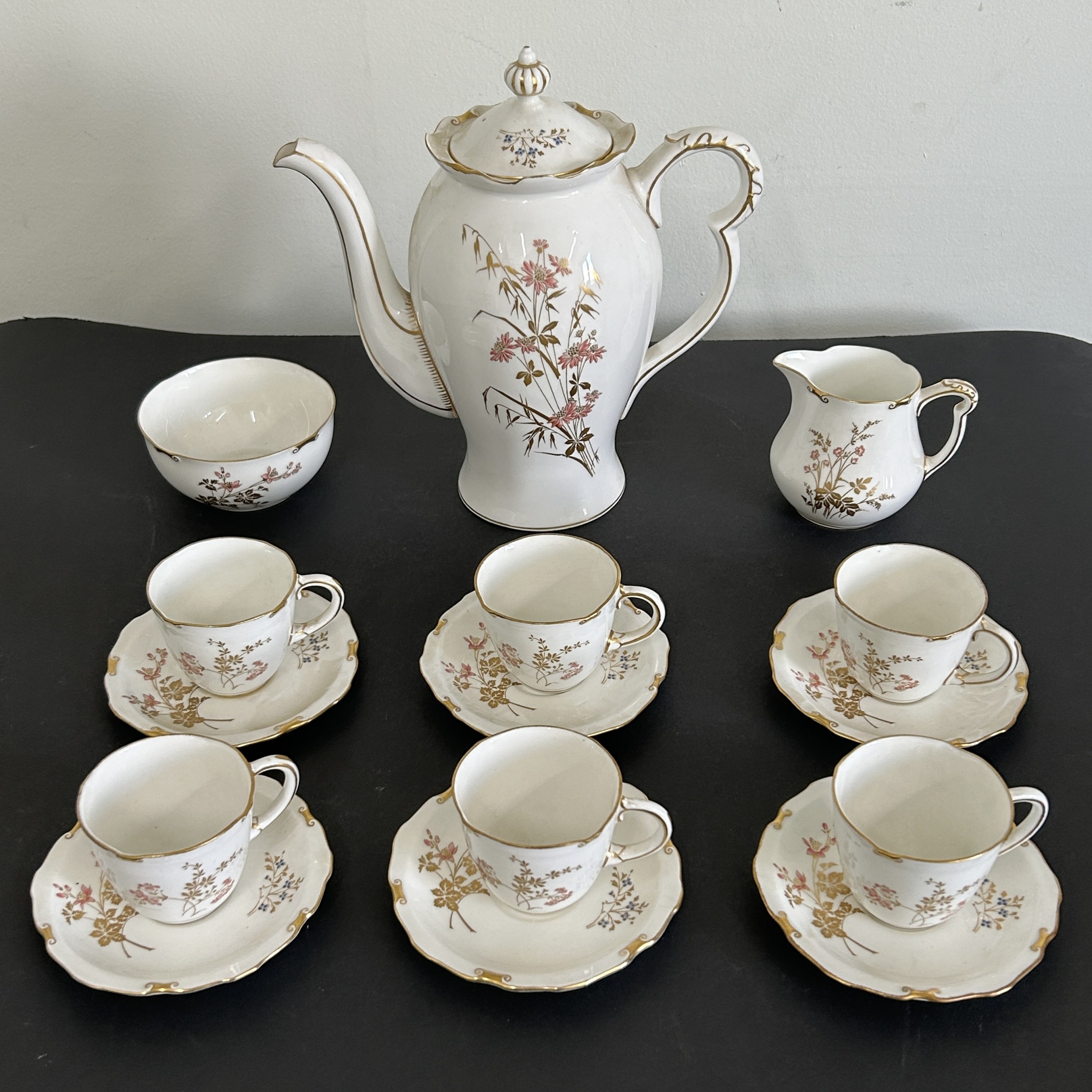 Royal Crown Derby porcelain 'Devonshire' pattern six setting coffee set including teapot, milk and sugar (minor wear to gilding)
