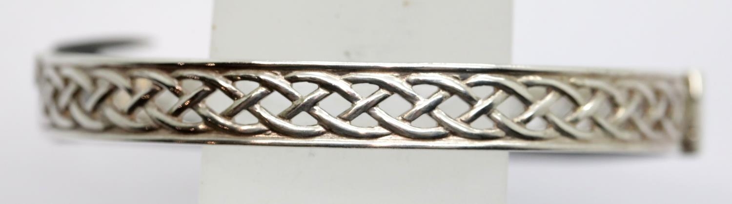 Ladies silver filigree solid hinged bangle. P&P Group 1 (£14+VAT for the first lot and £1+VAT for subsequent lots)