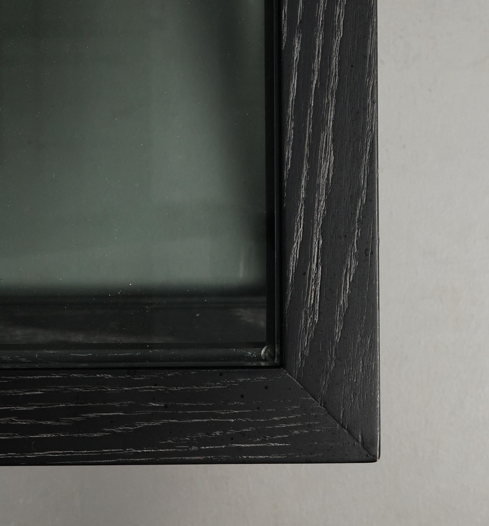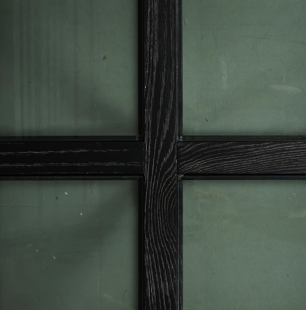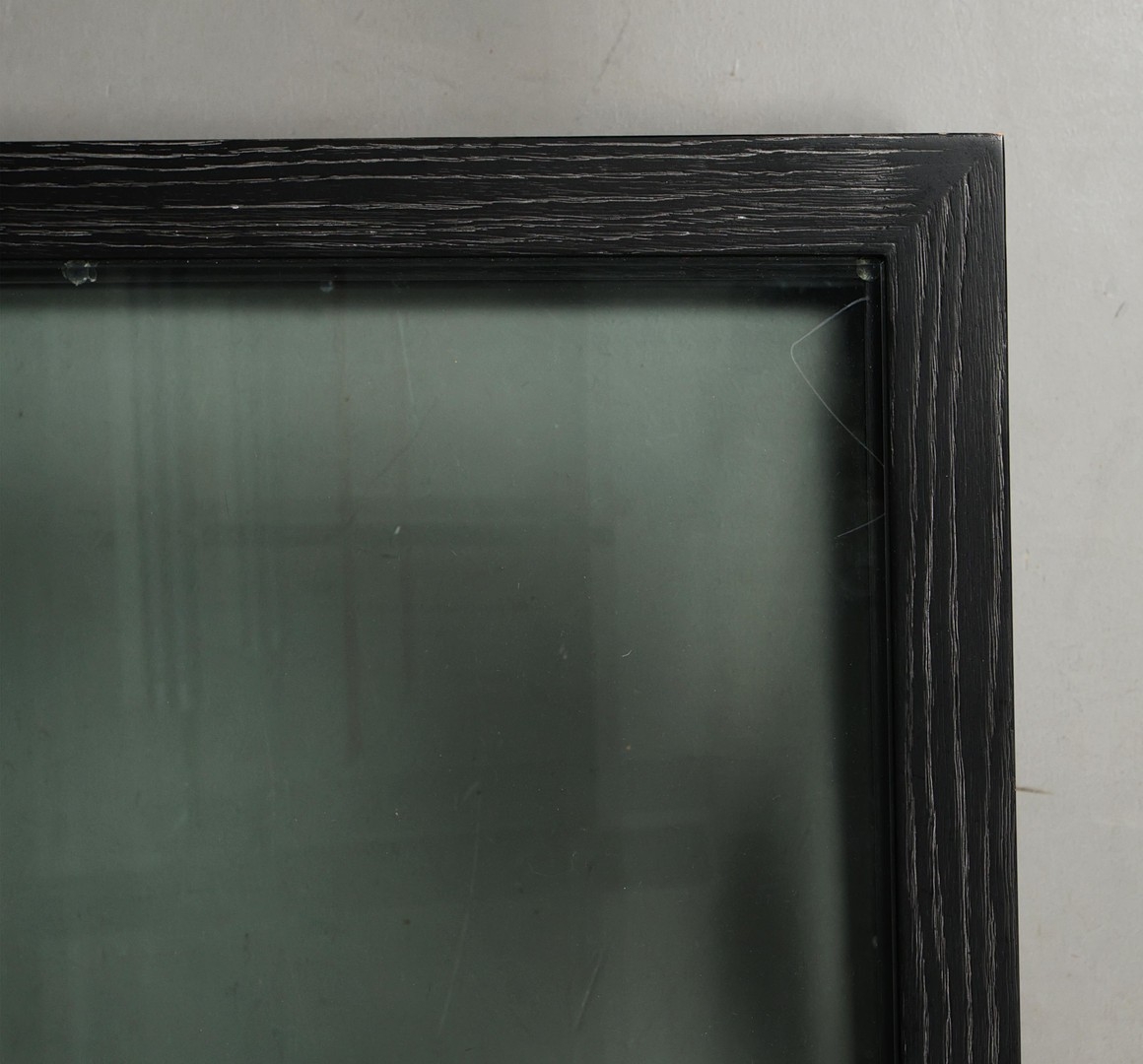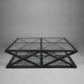 OKA MARYLEBONE COFFEE TABLE. ebonised oak with glass plates, 42cm H x 160cm W x 140cm D.