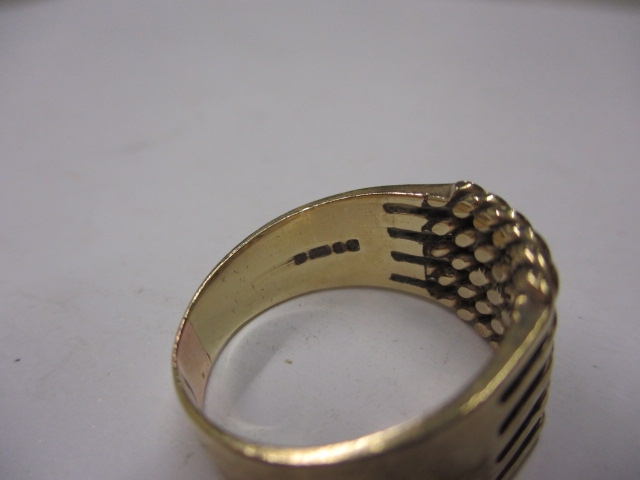 A vintage gents 9ct yellow gold ring, approx ring size ‘R’, approx weight 5.4g in useable pre-owned condition