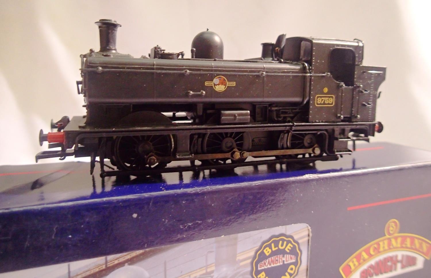 OO gauge Bachmann 32-200 DC, Pannier tank 9759 Black Late Crest in excellent condition, no detail pack, box is fair to good. P&P Group 1 (£14+VAT for the first lot and £1+VAT for subsequent lots)