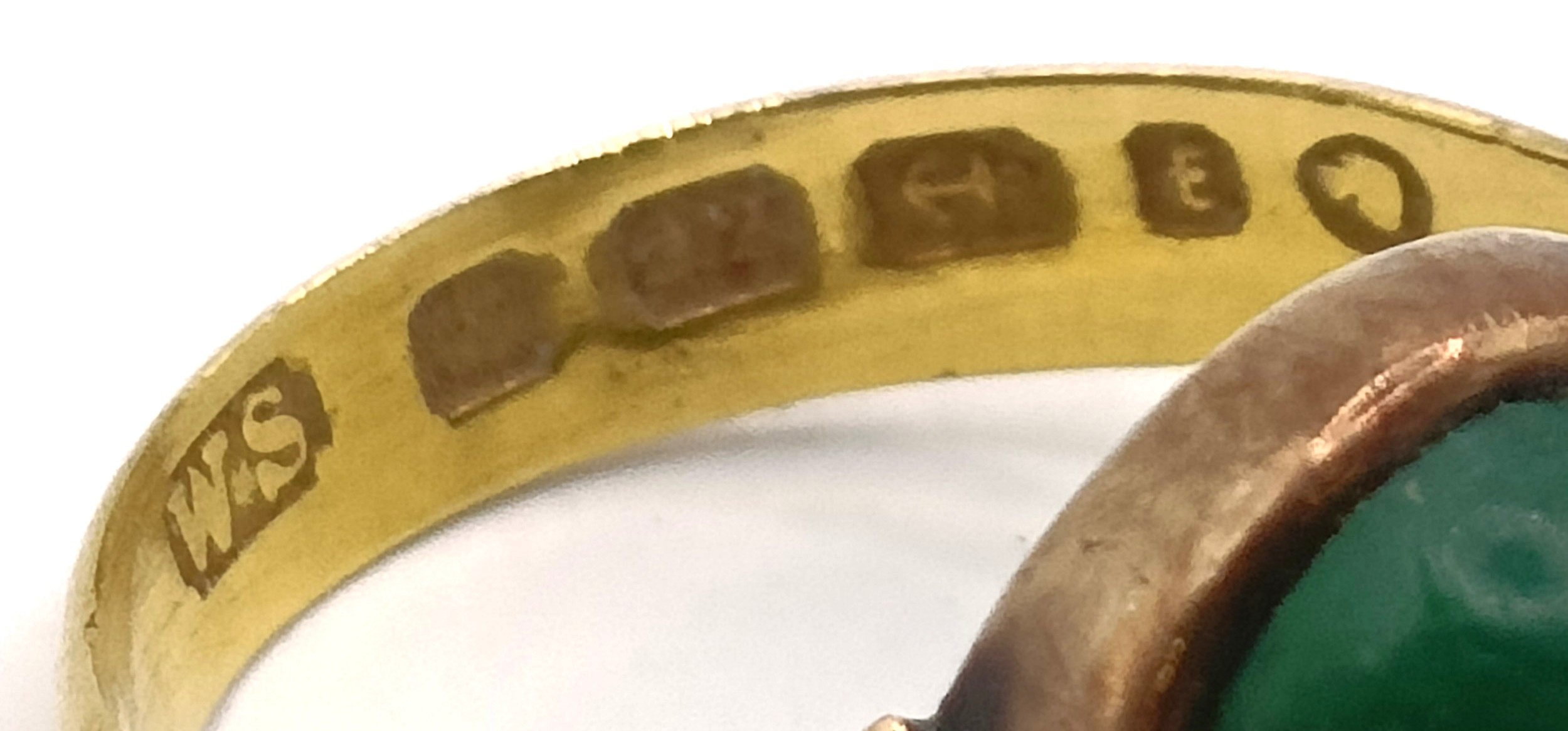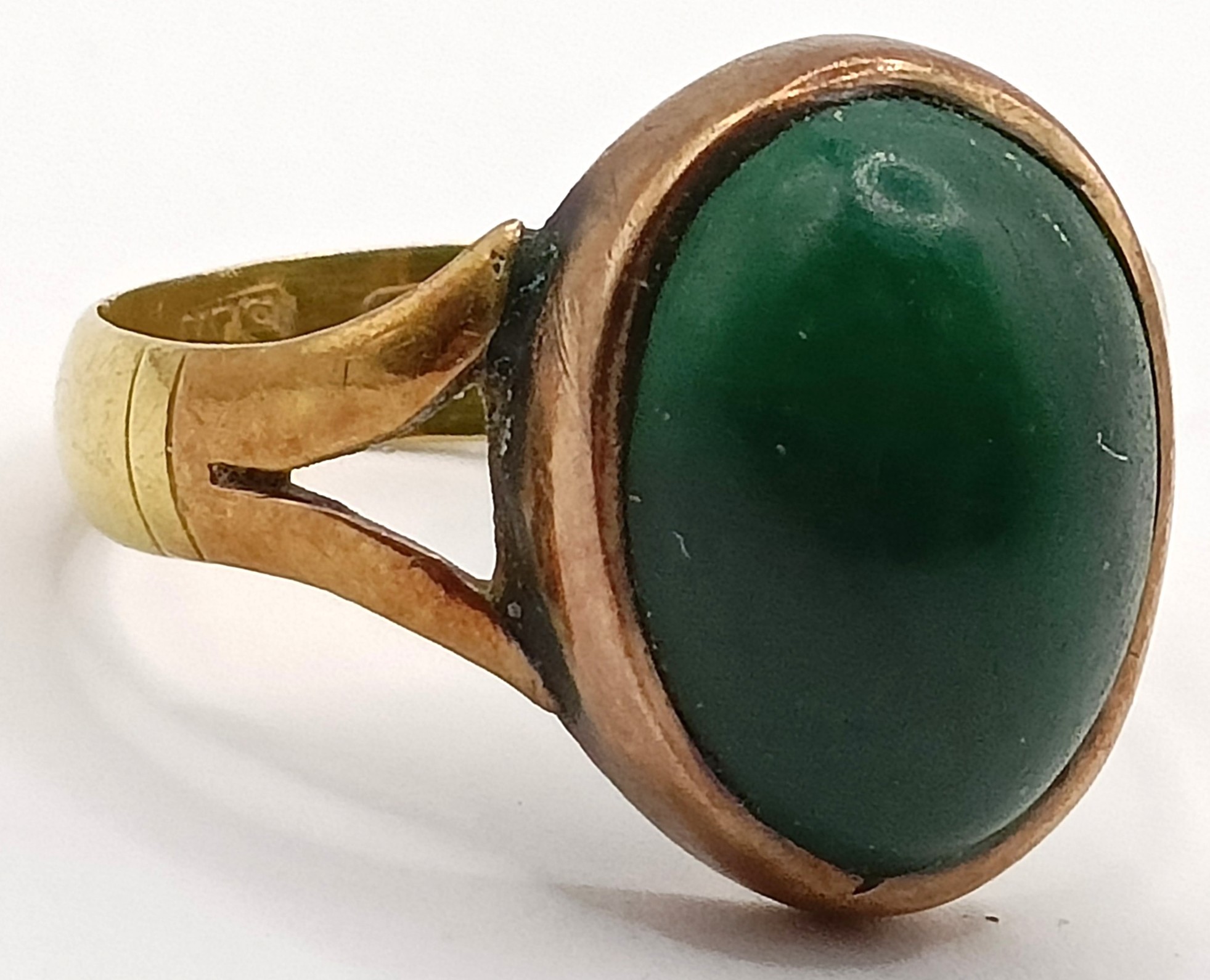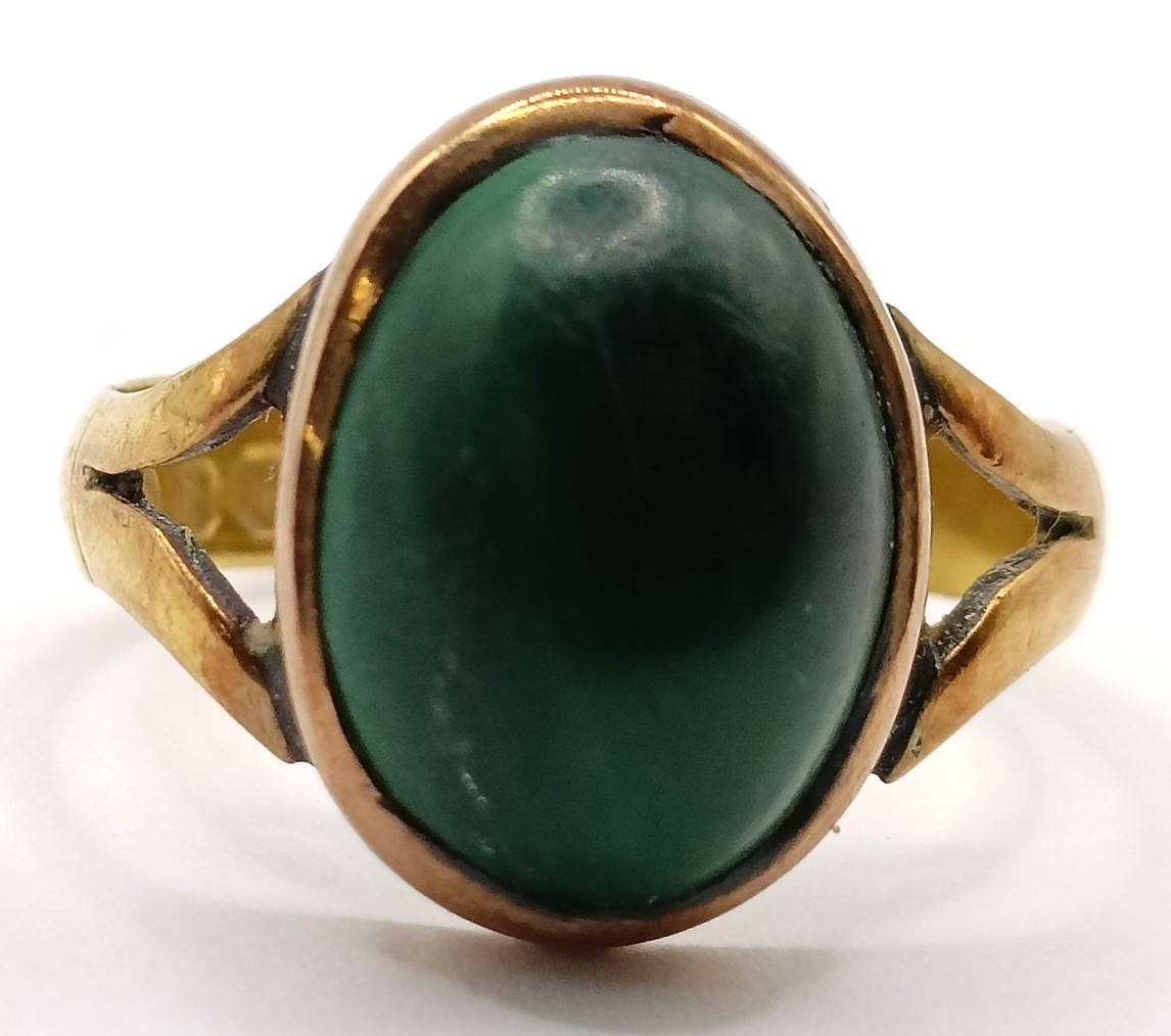 A Victorian 22ct gold and cabochon cut jade ring, ring size N