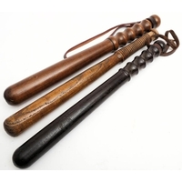 Two Devon Constabulary truncheons: both stamped with King's crown and constabulary, together with one unmarked truncheon, all with leather straps (3)