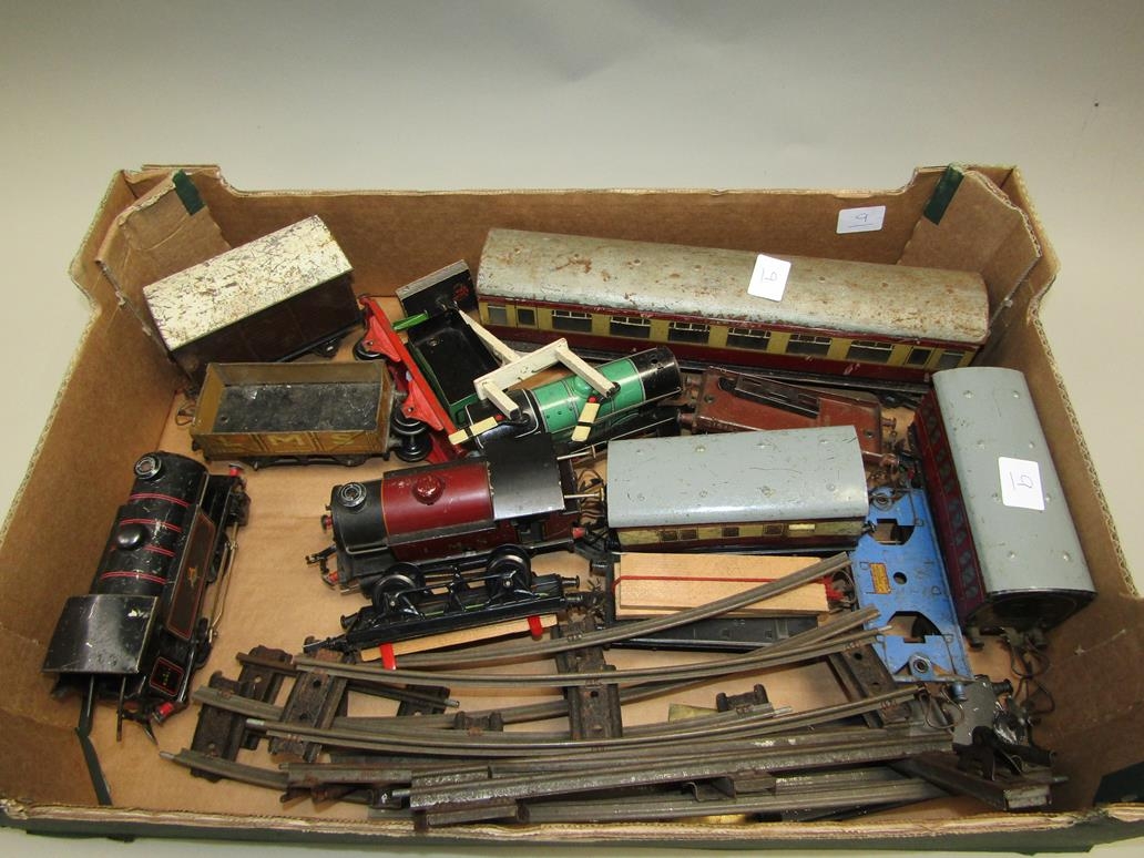 COLLECTION OF O GAUGE CLOCKWORK RAILWAY TO INCL THREE ENGINES
