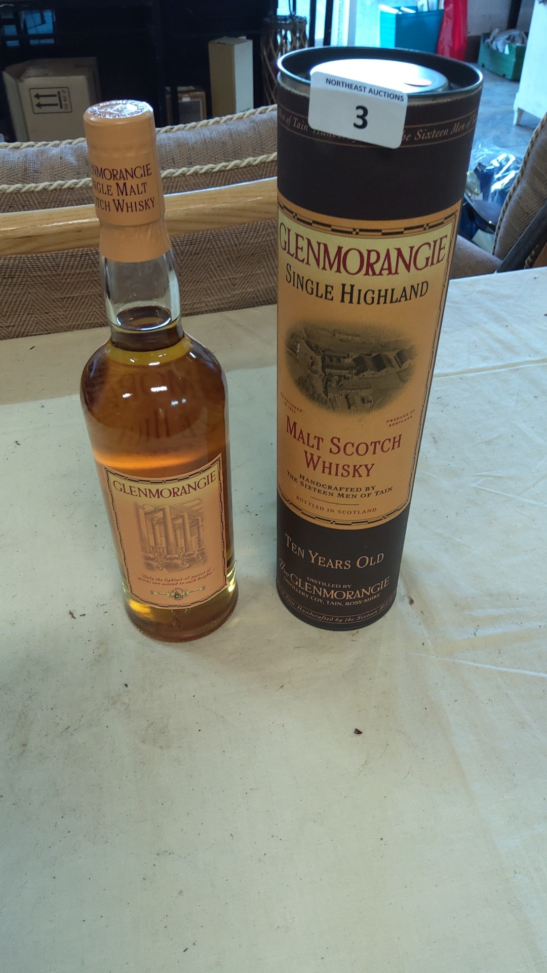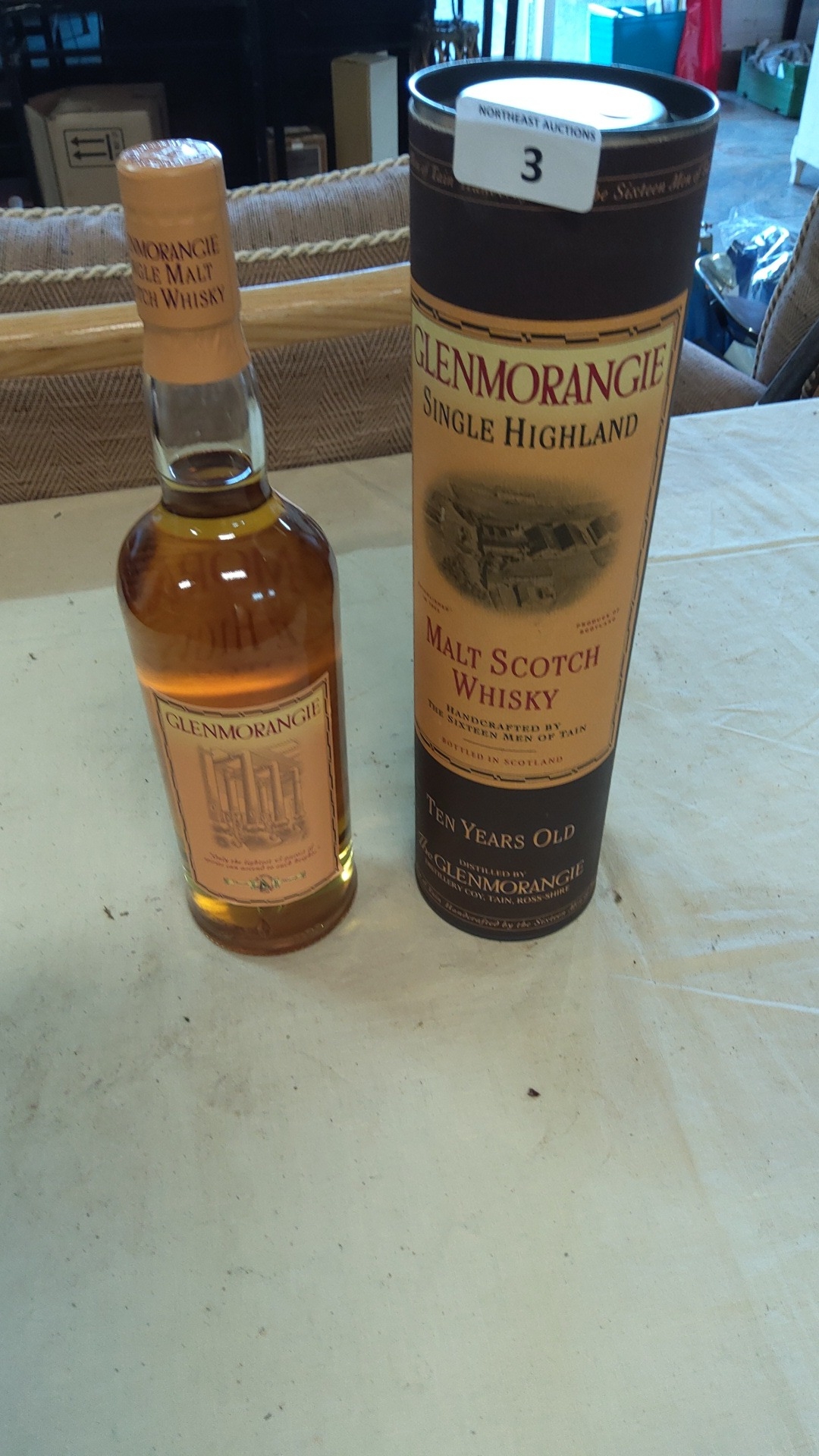 Bottle of Glenmorangie Single Highland Malt Scotch Whisky, ten years old, 70 cl, presented with original cylindrical tube.