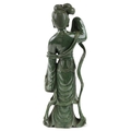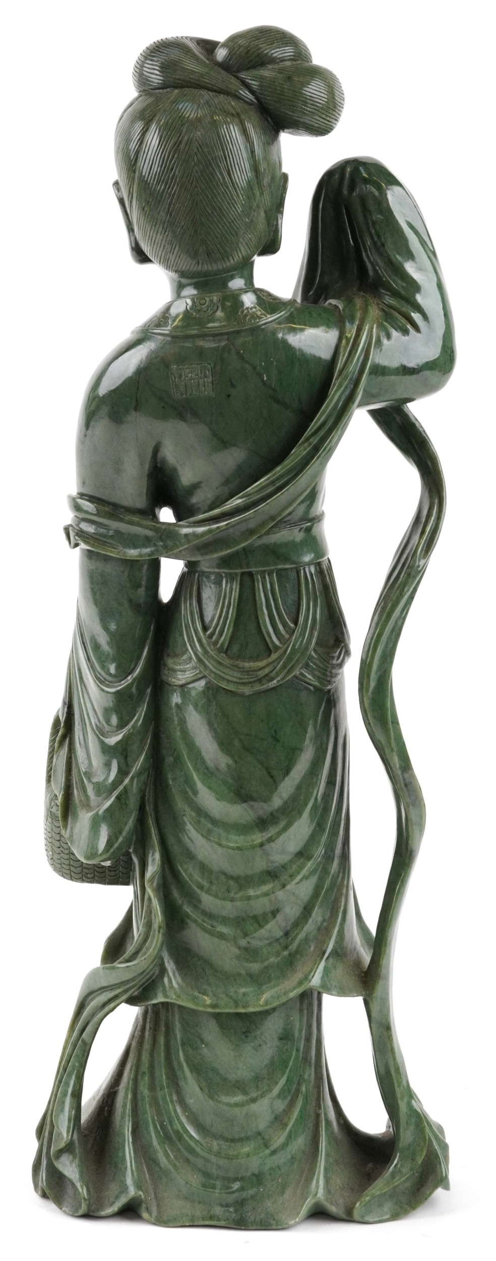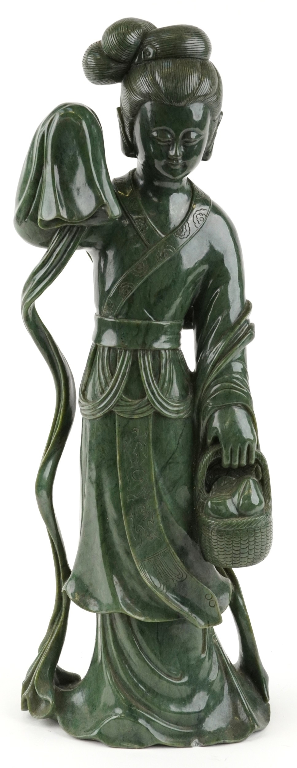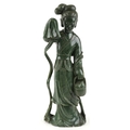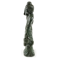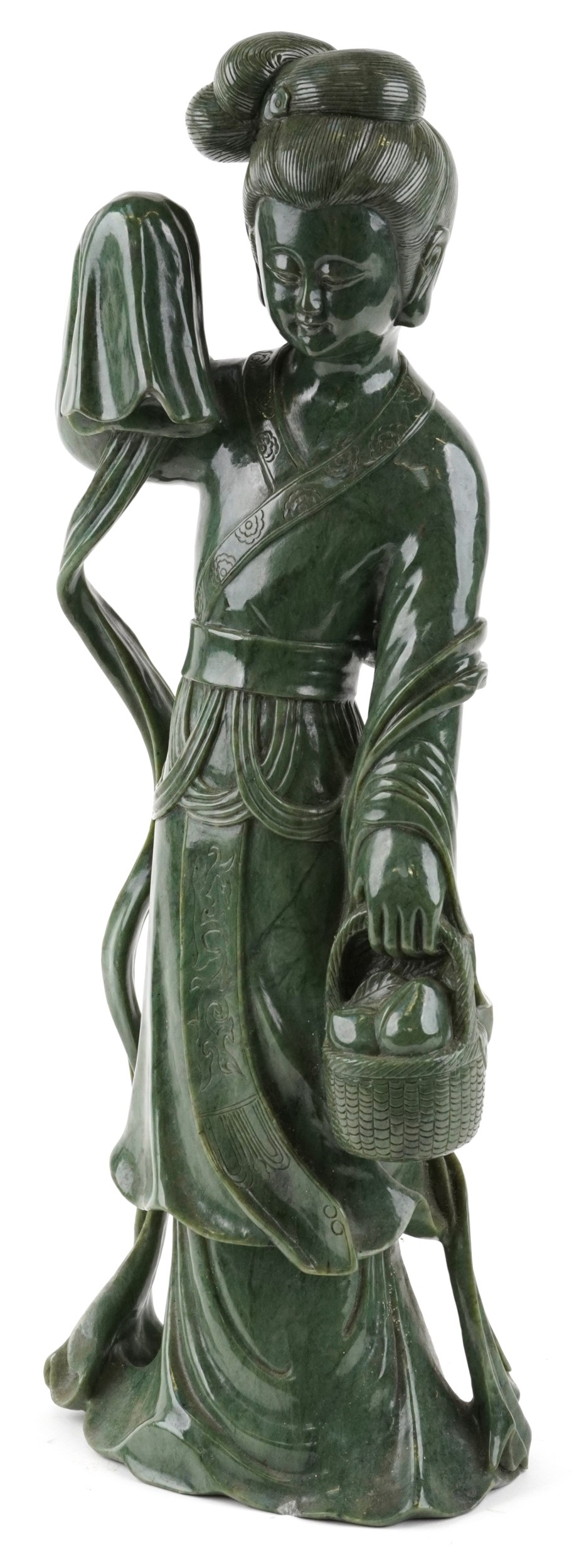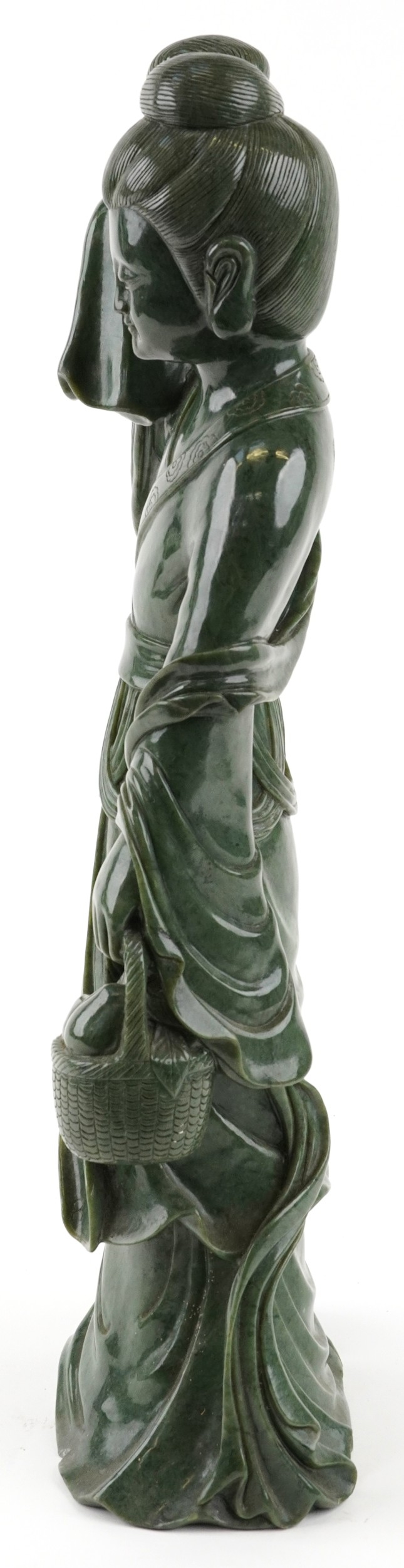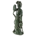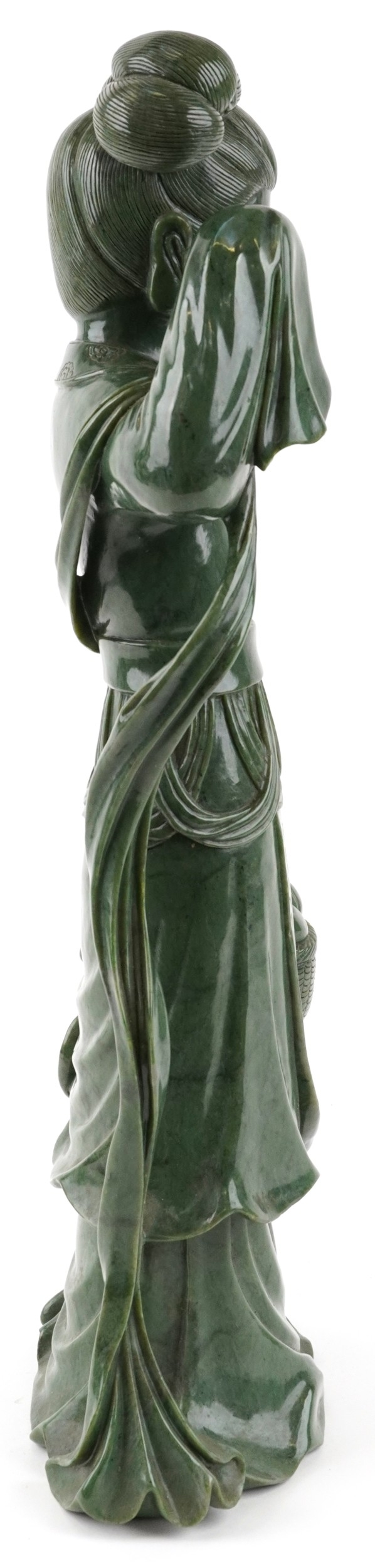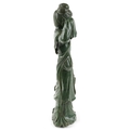 A large Chinese spinach green jade figure of an immortal, 20th century, H-62cm.