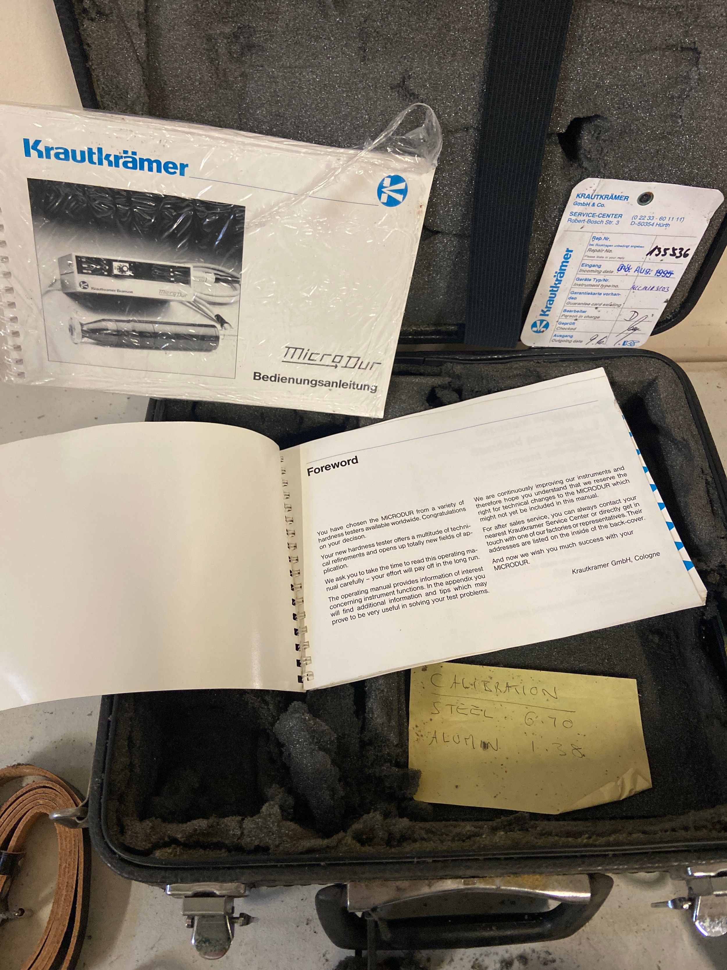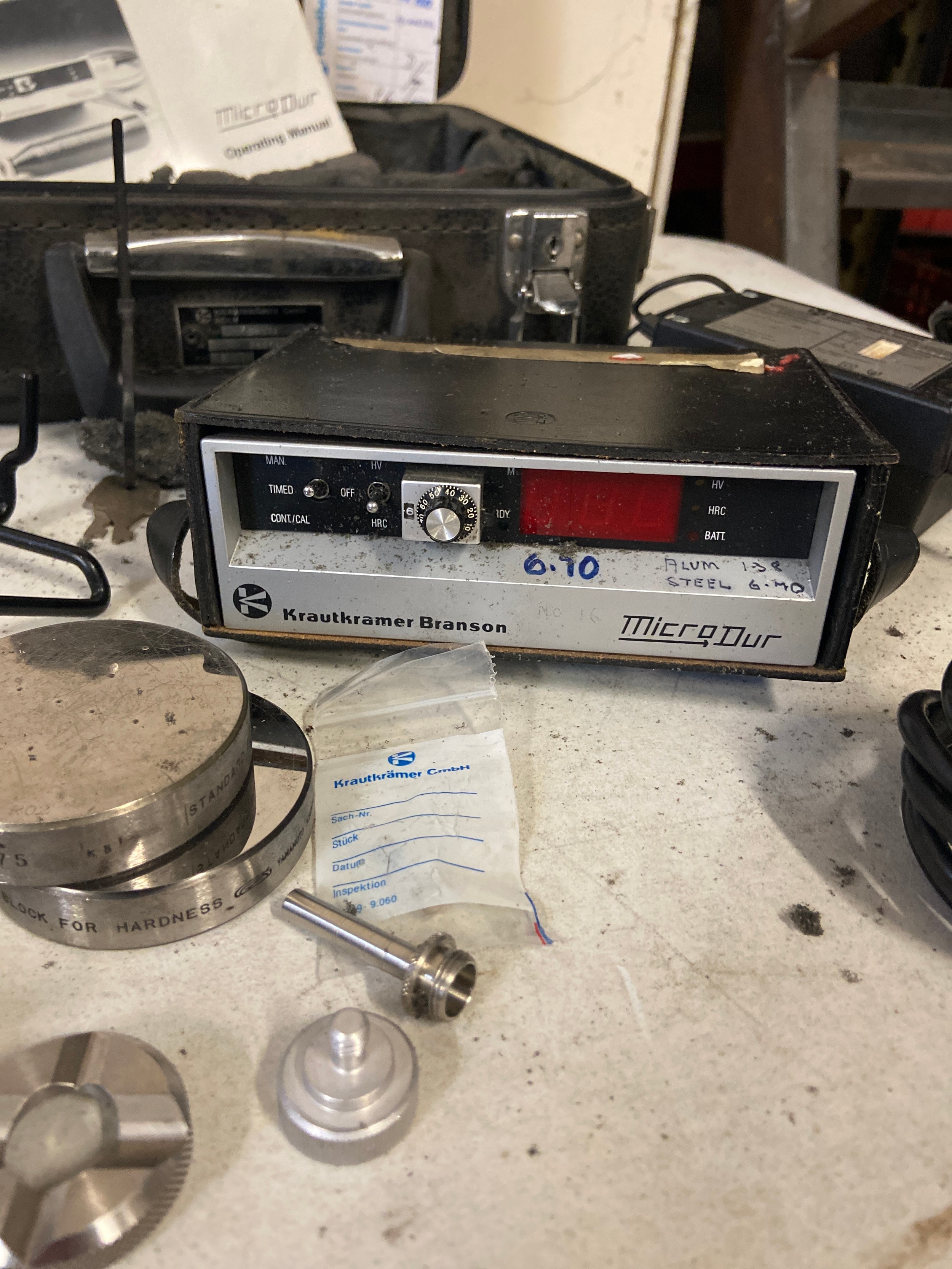 Krautkrämer Branson Micro Dur portable hardness tester in case.