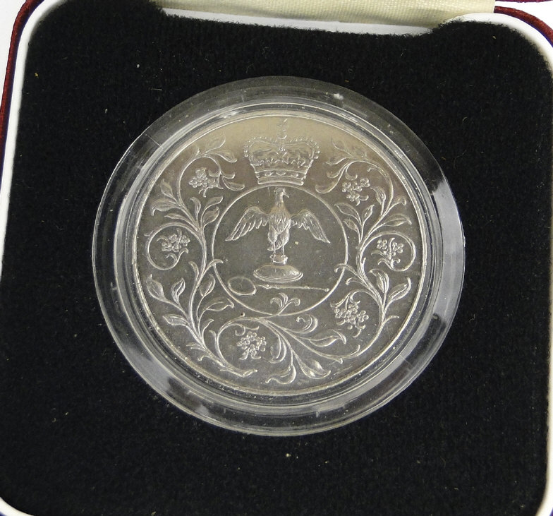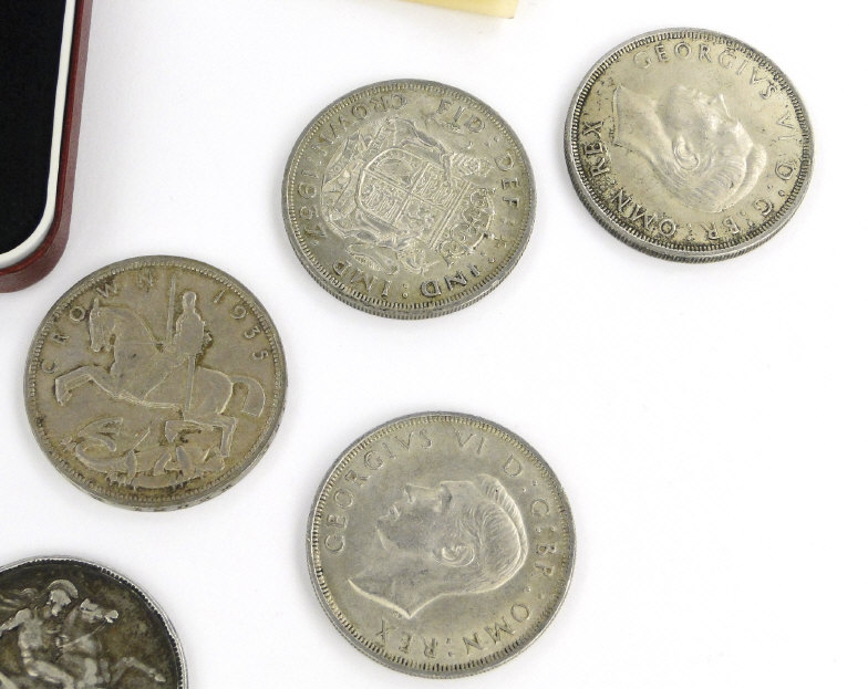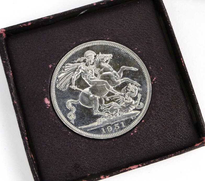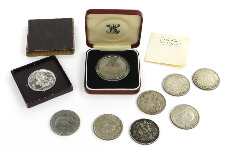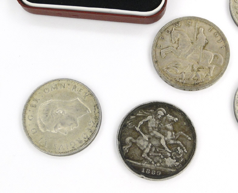 Collection of British crowns comprising 1889, five 1935, 1951 unboxed, 1951 boxed and a boxed 1977 proof