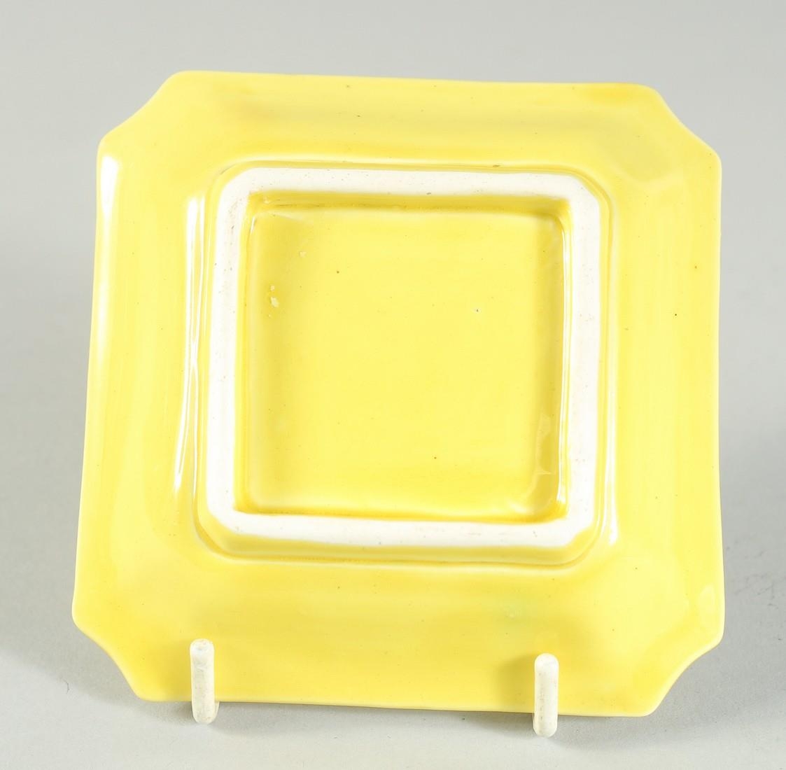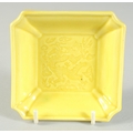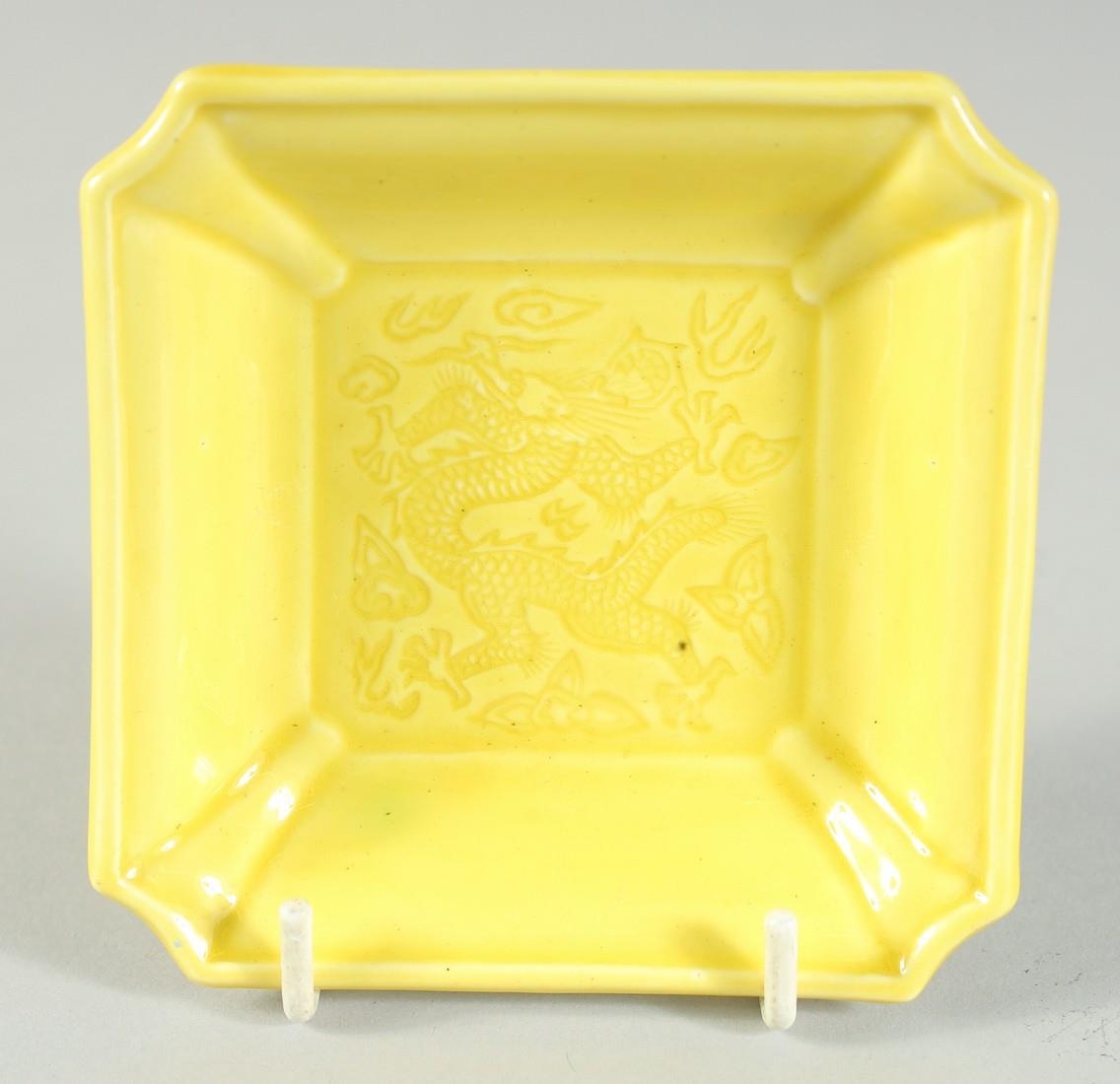 A SMALL CHINESE YELLOW GLAZED SQUARE FORM DRAGON DISH, 9.5cm square.