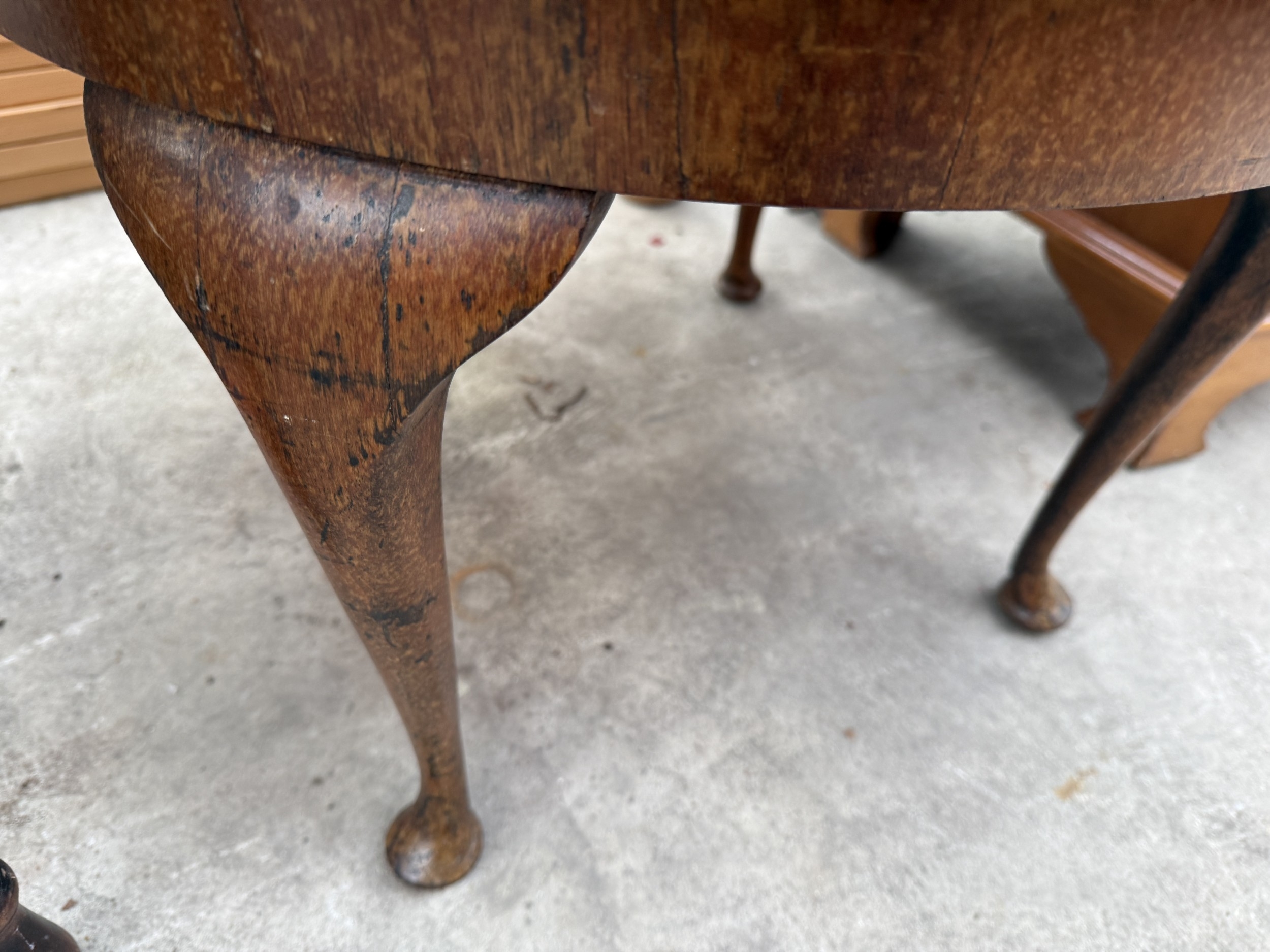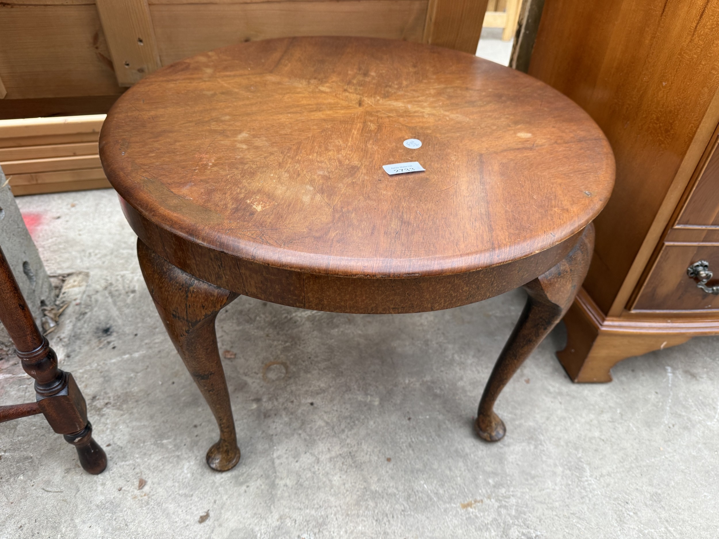 A MID 20TH CENTURY COFFEE TABLE, 23' DIAMETER, ON CABRIOLE LEGS