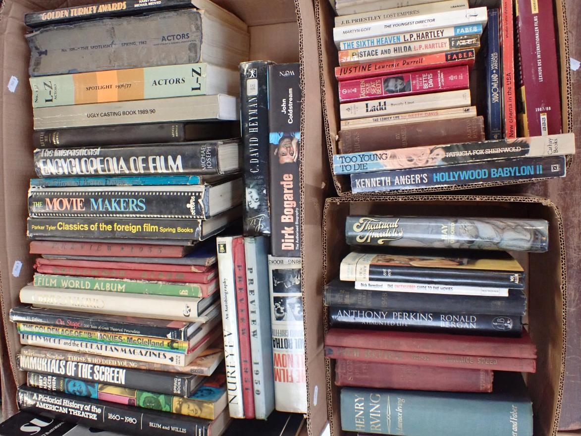 THEATRE/FILM; A COLLECTION OF BOOKS including film review annuals, biographies, actor's directories etc, and a quantity of theatrical ephemera, posters, including Steven Berkoff in 'Decadence, Wyndham's Theatre, etc