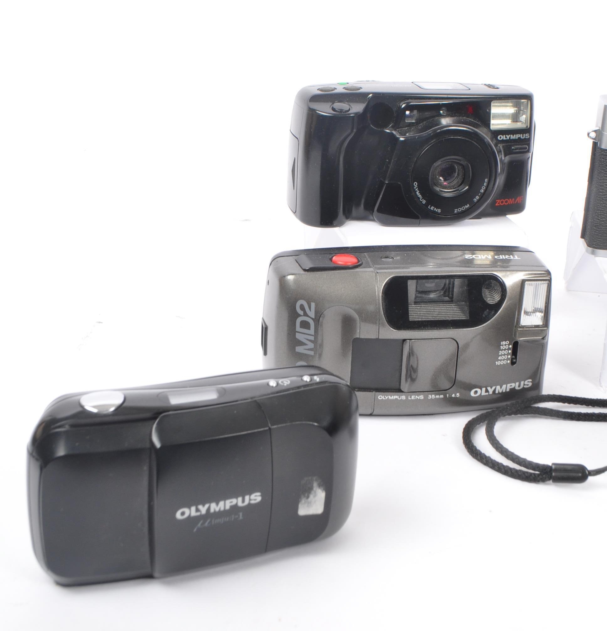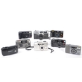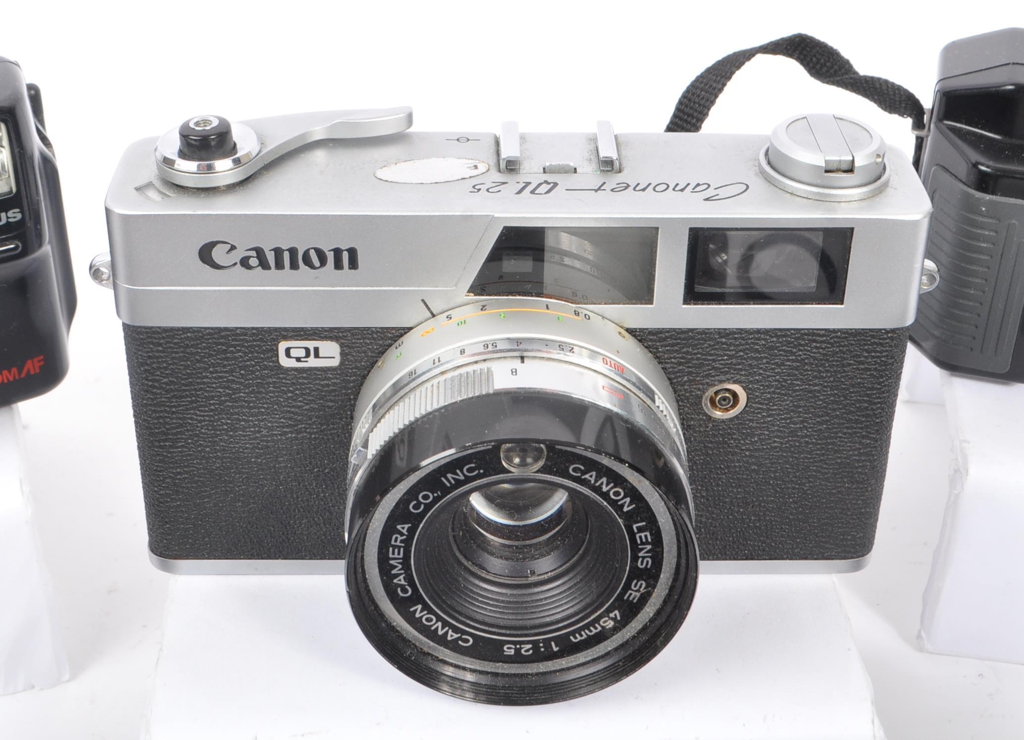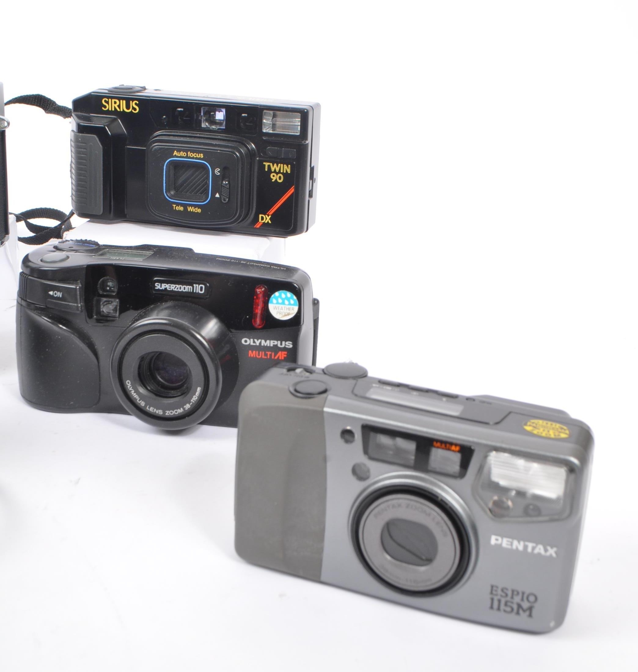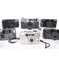 A collection of late 20th century 35mm and other compact film point and shoot cameras. The collection to include an Olympus MJU 1 camera, alongside a Canon Canonet QL 25, and Pentax Espio 115M, and Espio 928M cameras. To include also cameras from Olympus, and Sirius also.