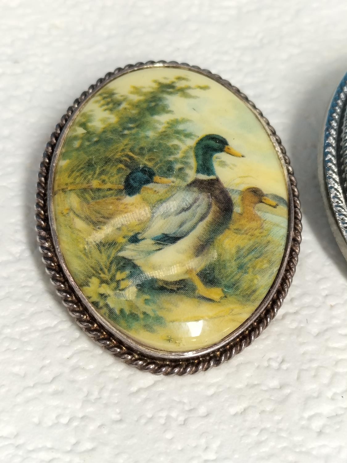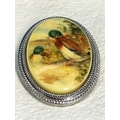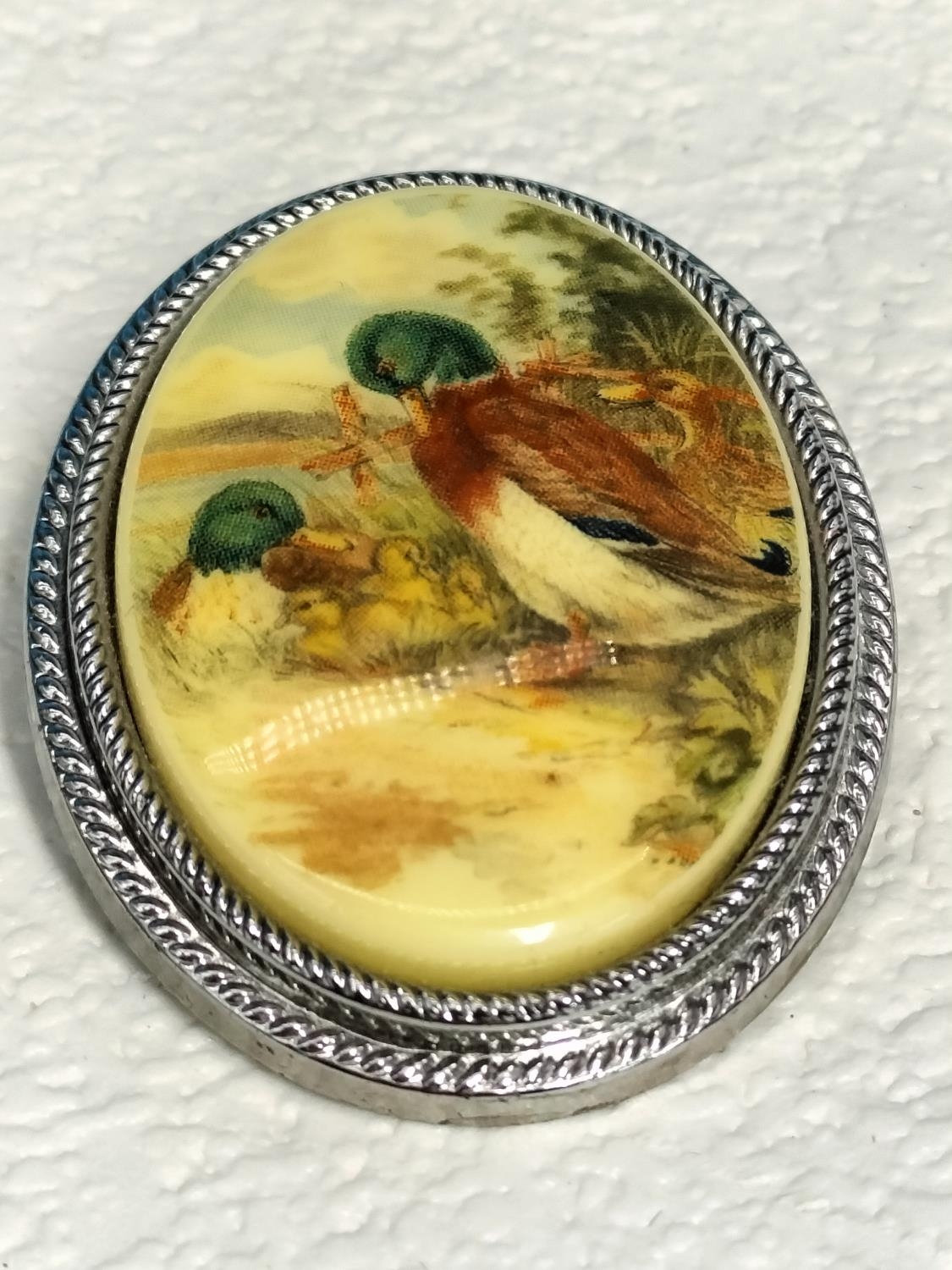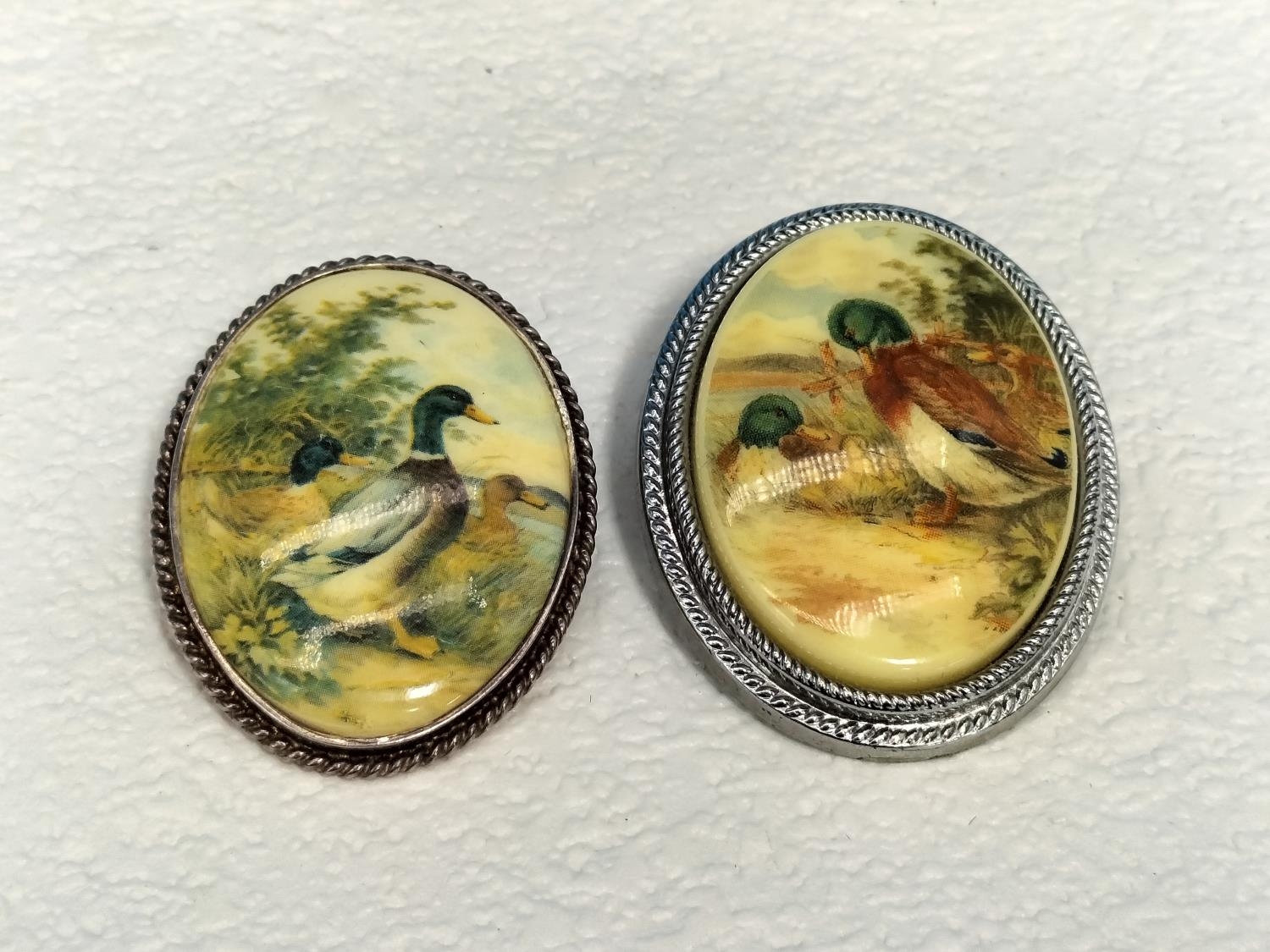 Mallard/Duck Picture Brooch and Scarf Clip, One in Silver Mount.