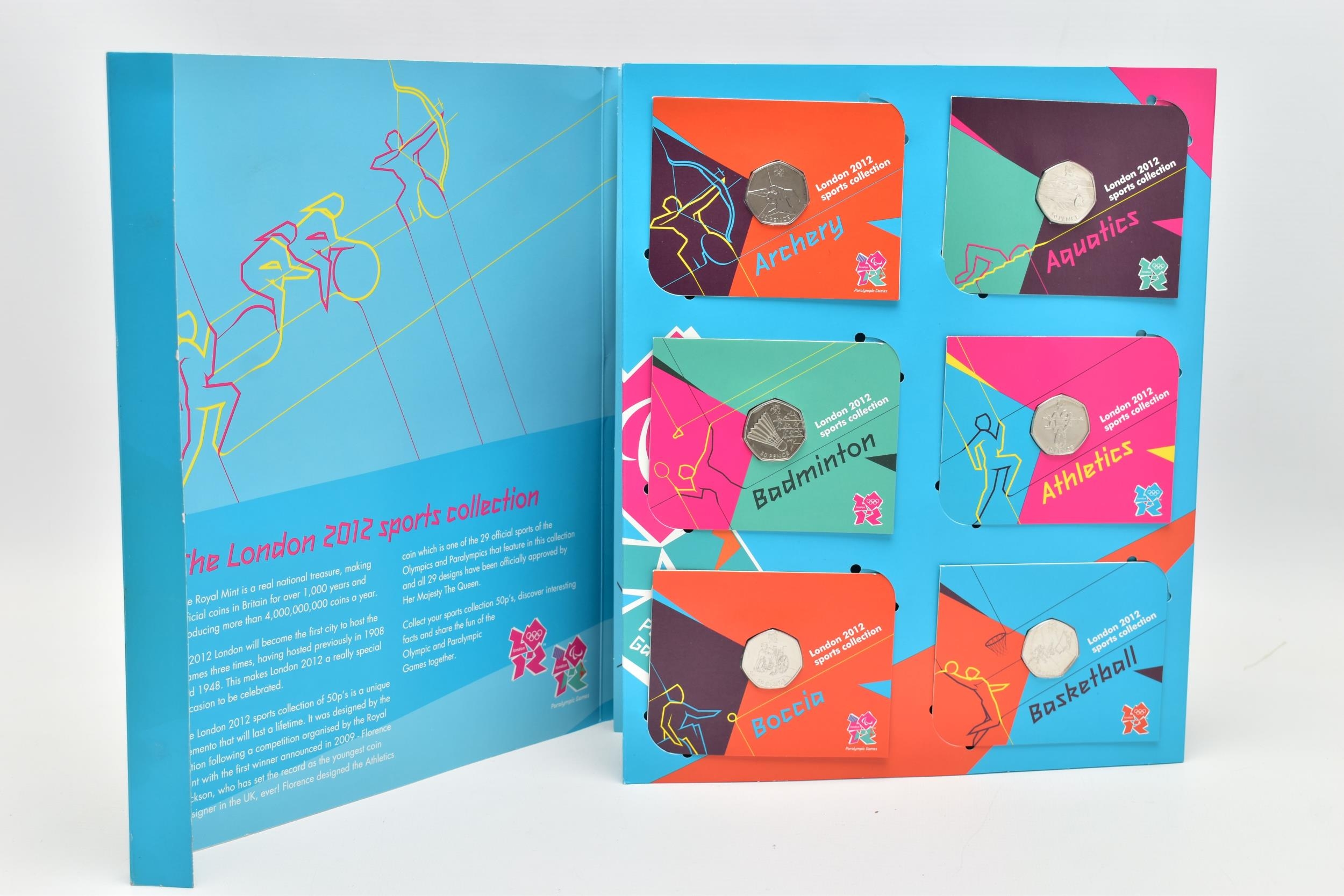 A FULL SET (29) ROYAL MINT UNCIRCULATED LONDON OLYMPICS FIFTY PENCE COINS, all the coins are in the original Royal Mint protective bubbles and housed in the RM folder