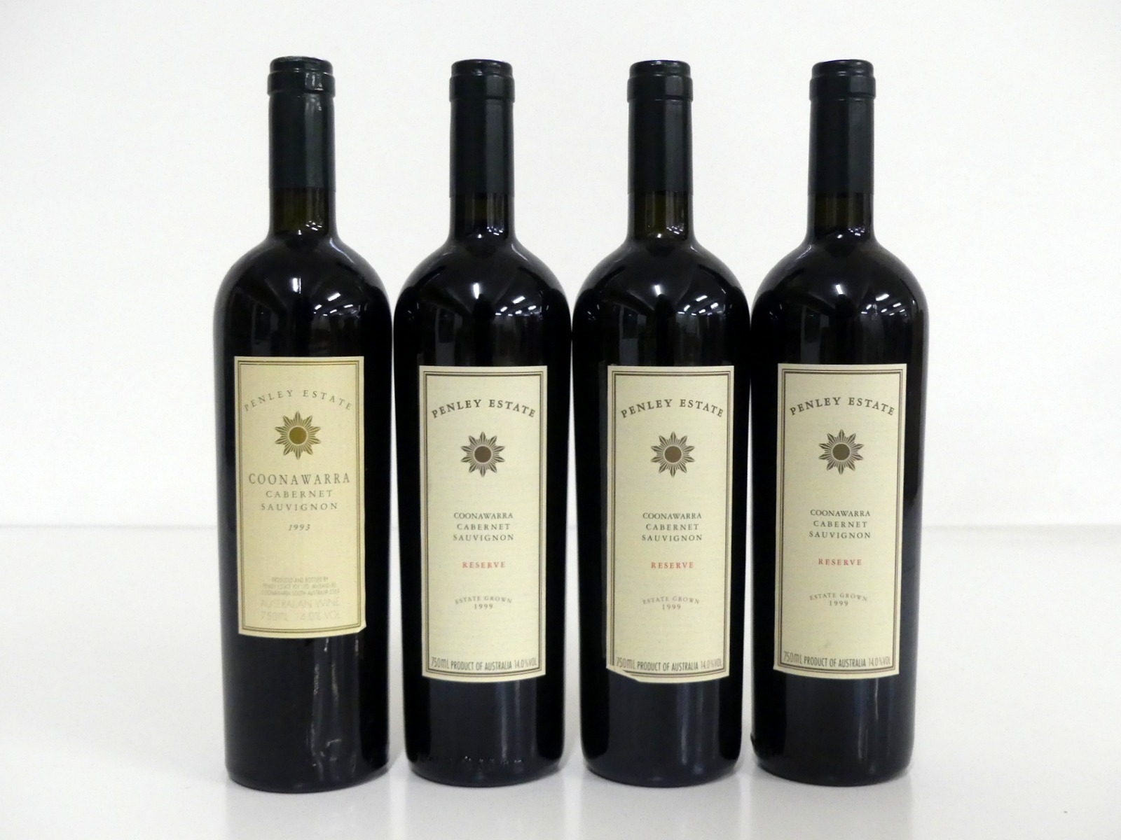 1 bt Penley Estate Cabernet Sauvignon 1993 Coonawarra 3 bts Penley Estate Cabernet Sauvignon Reserve 1999 Coonawarra 2 i.n, 1 vts Above 4 bottles