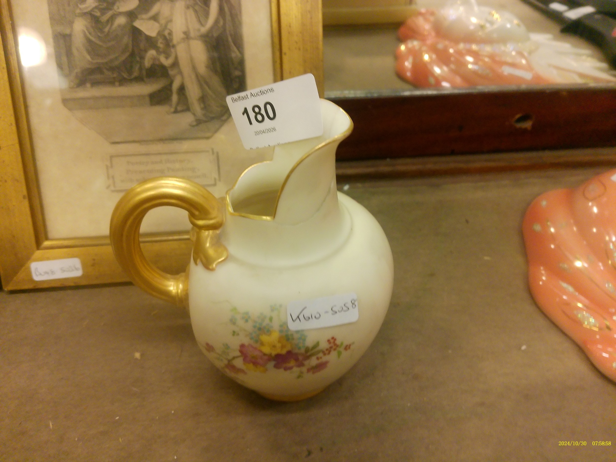 ROYAL WORCESTER H/PAINTED JUG C 1900 A/F