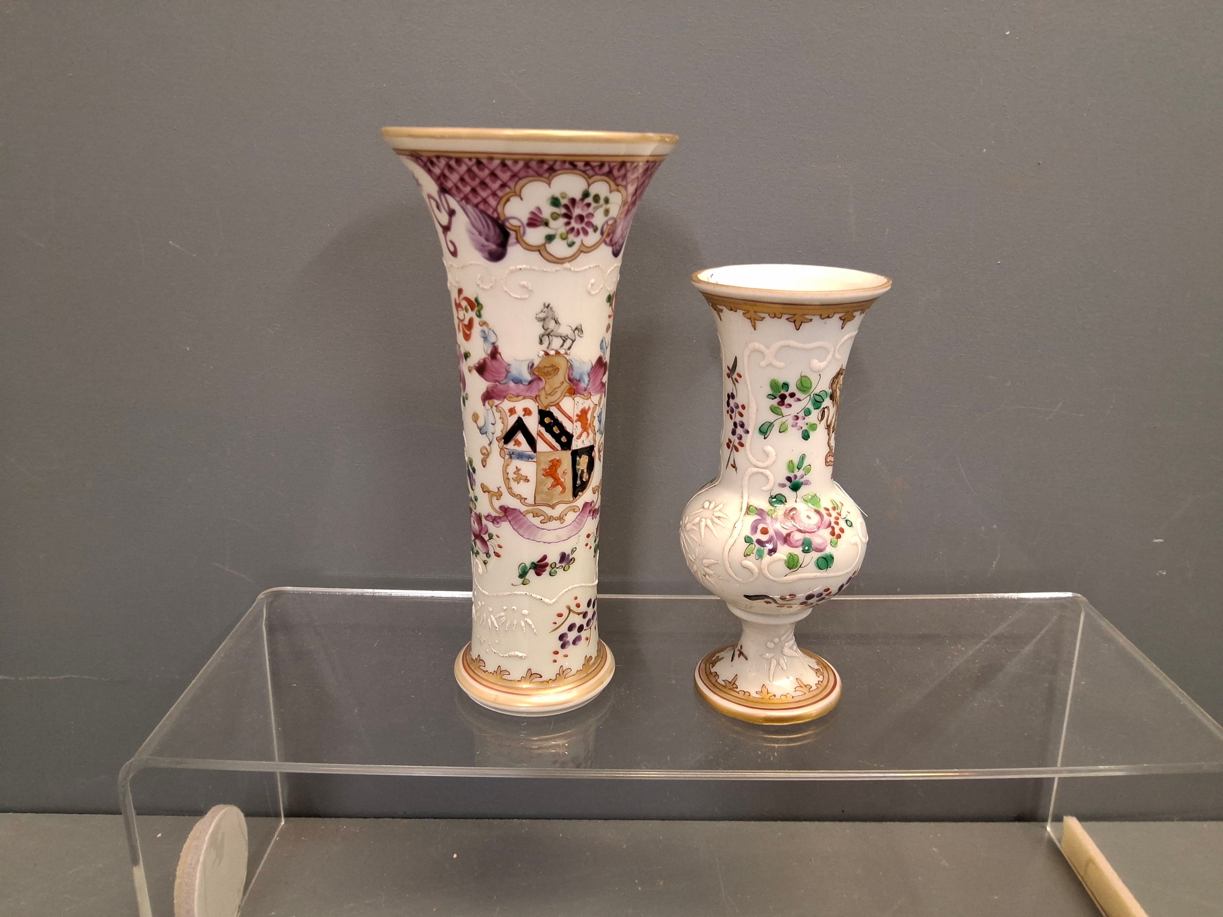 Antique Samson armorial vases.Tallest one is 15.5cm