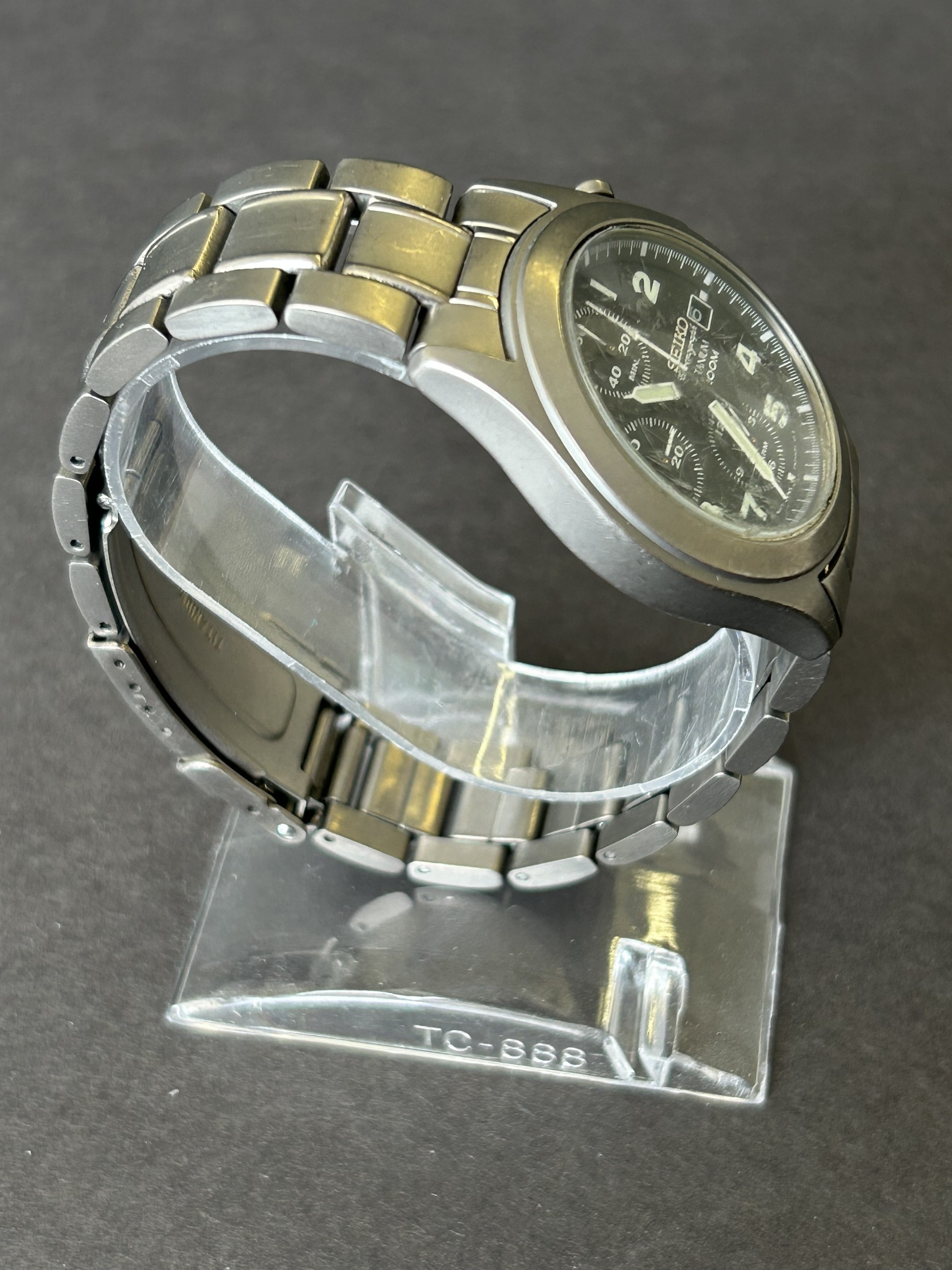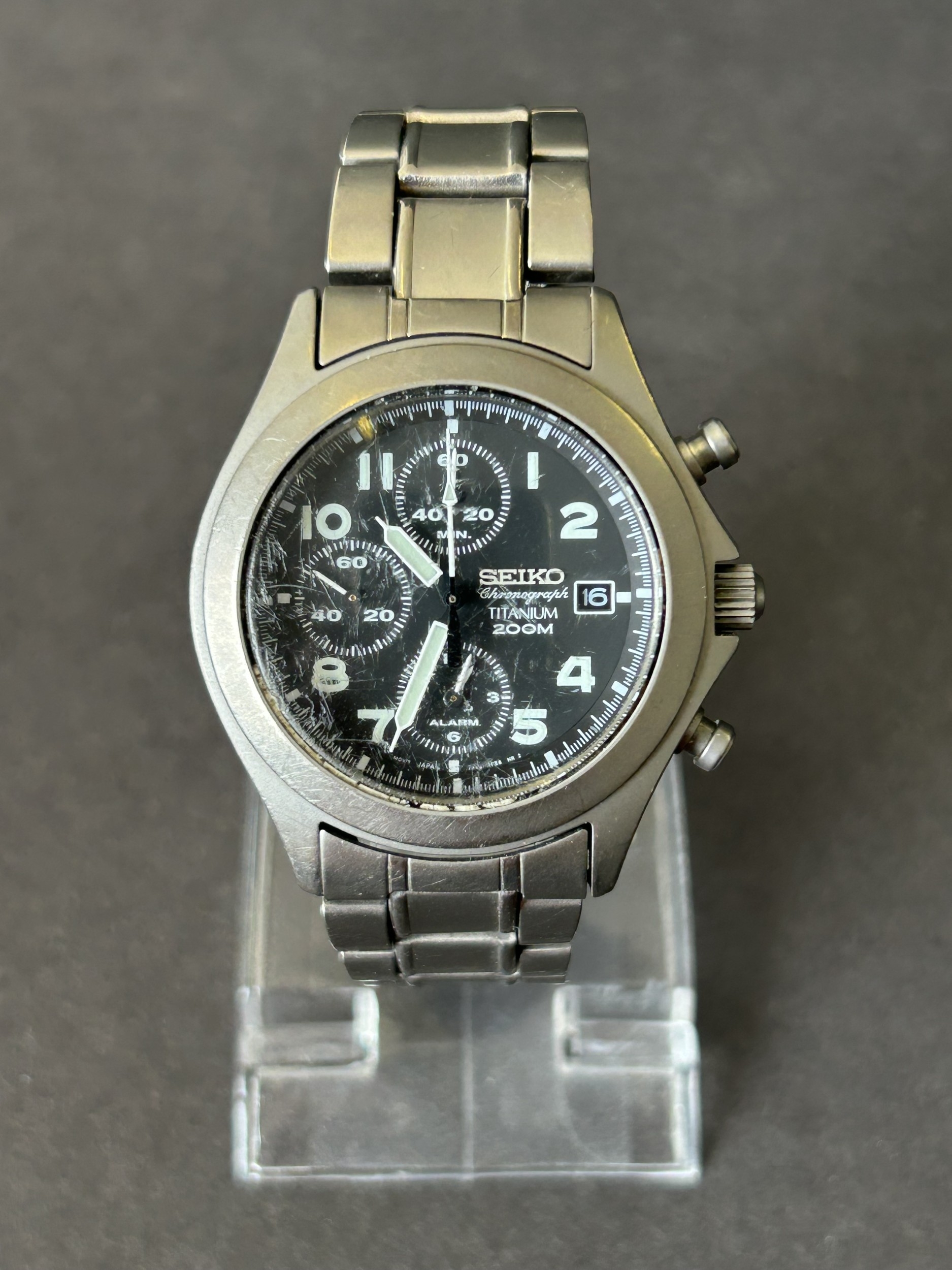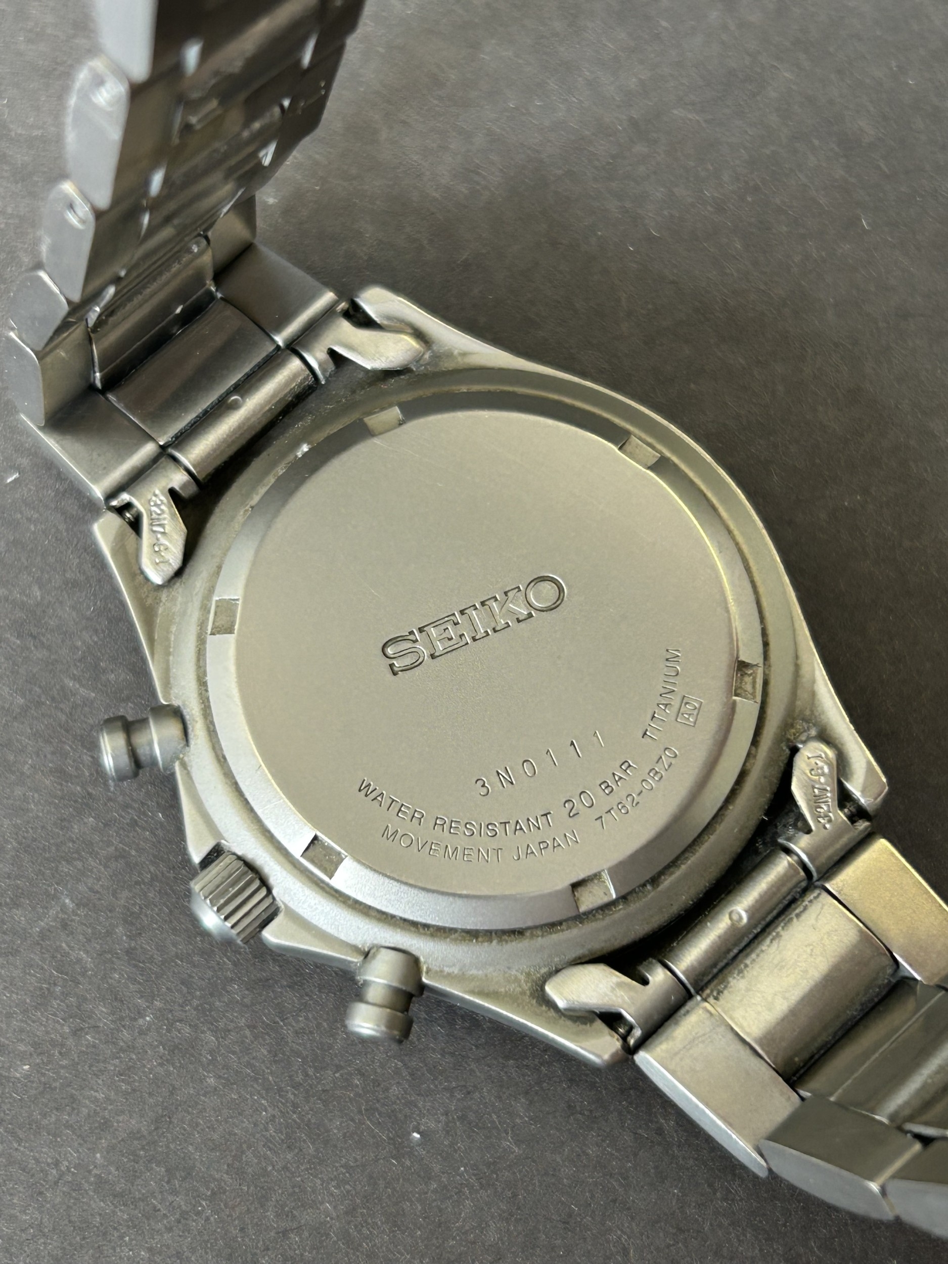 A Seiko Chronograph Titanium gentleman wristwatch, 7T62-0B20 movement, 42mm dia (runs and ticks, wear to watch, scratches on crystal)