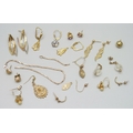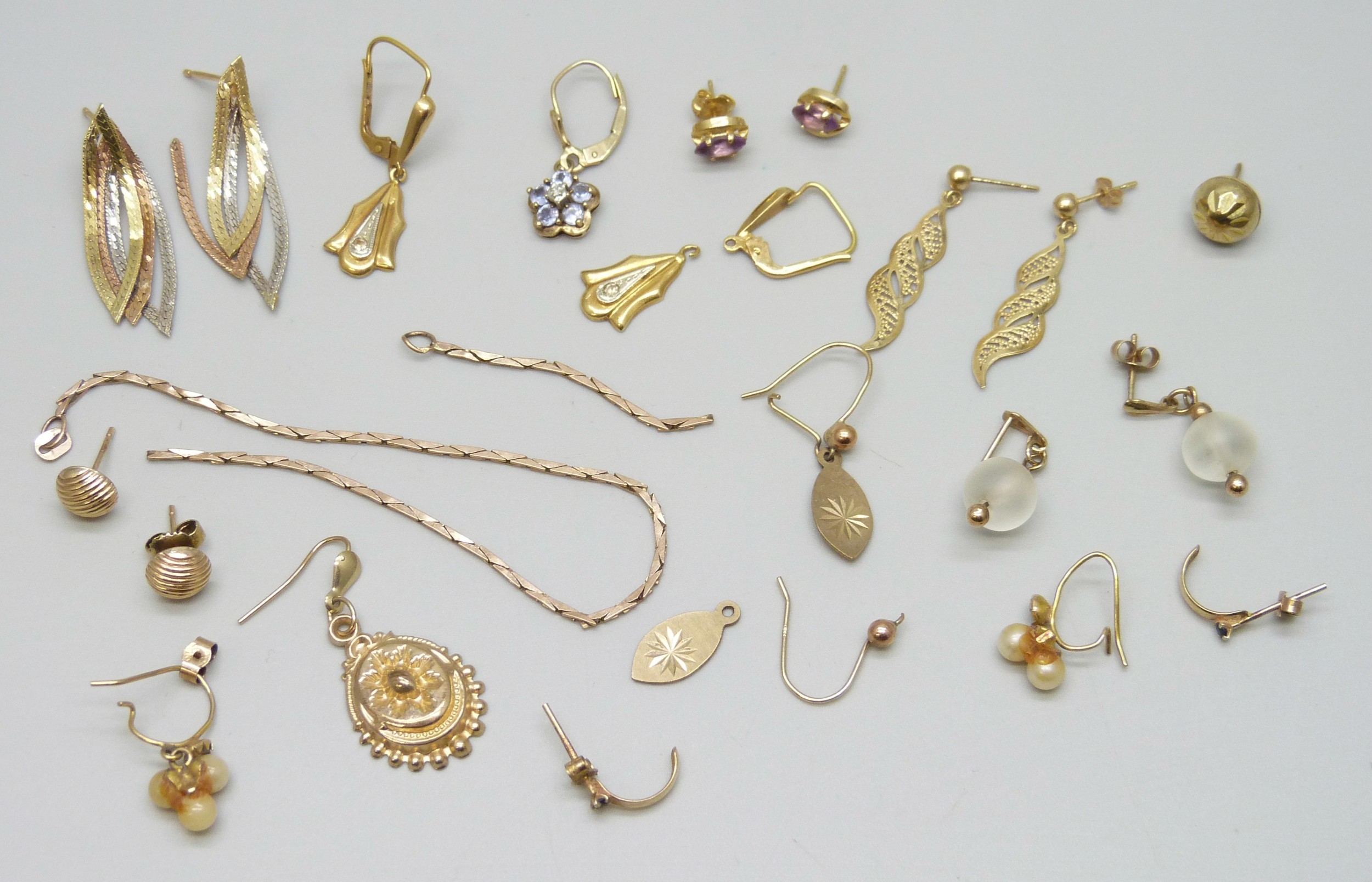 A collection of yellow metal and 9ct gold jewellery, all a/f, 14.1g total