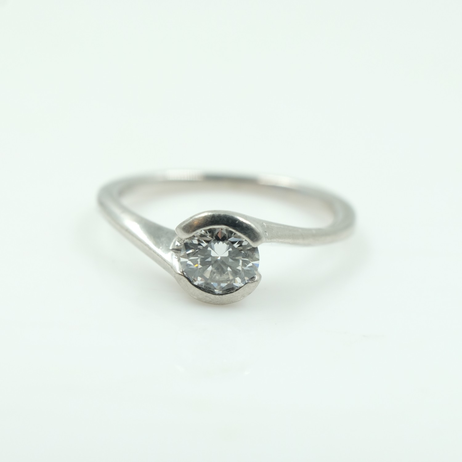 Hallmarked platinum and 0.5ct diamond solitaire ring, size J, 2.8g. UK P&P Group 0 (£7+VAT for the first lot and £1+VAT for subsequent lots)