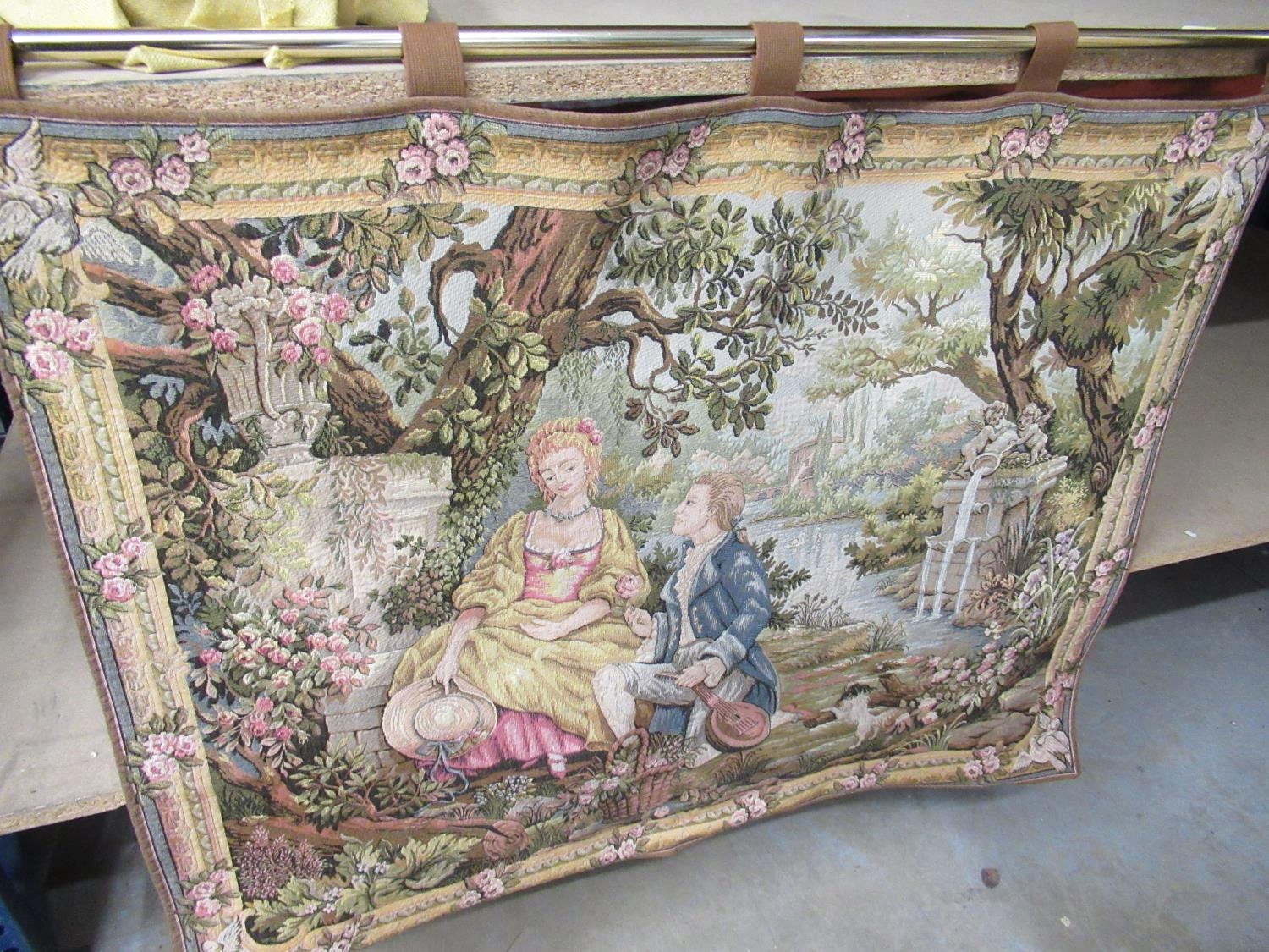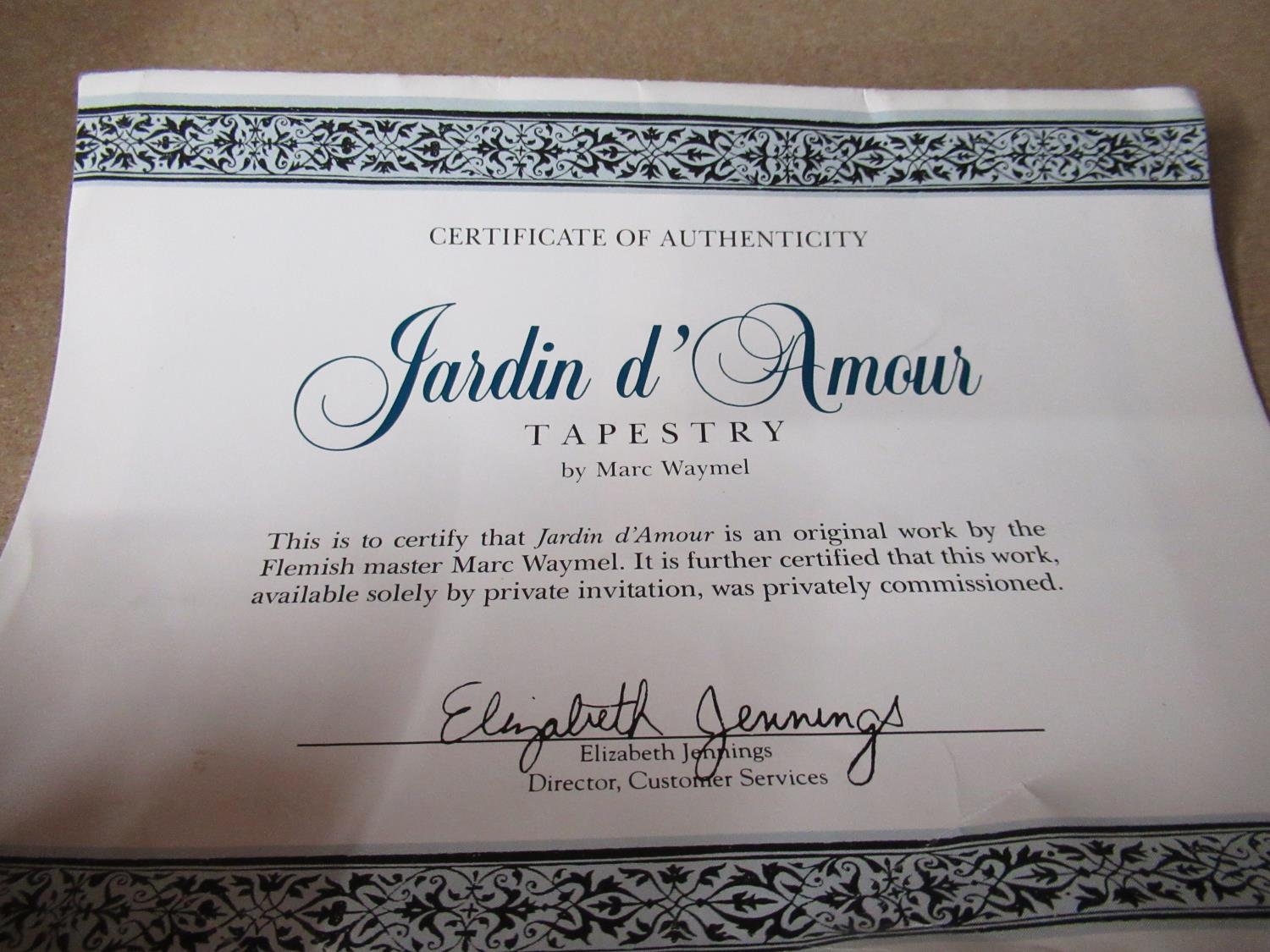 Franklin Mint Jardin de Amour tapestry by Marc Waymel, with gilt hanging rail and COA, W137cm H98cm