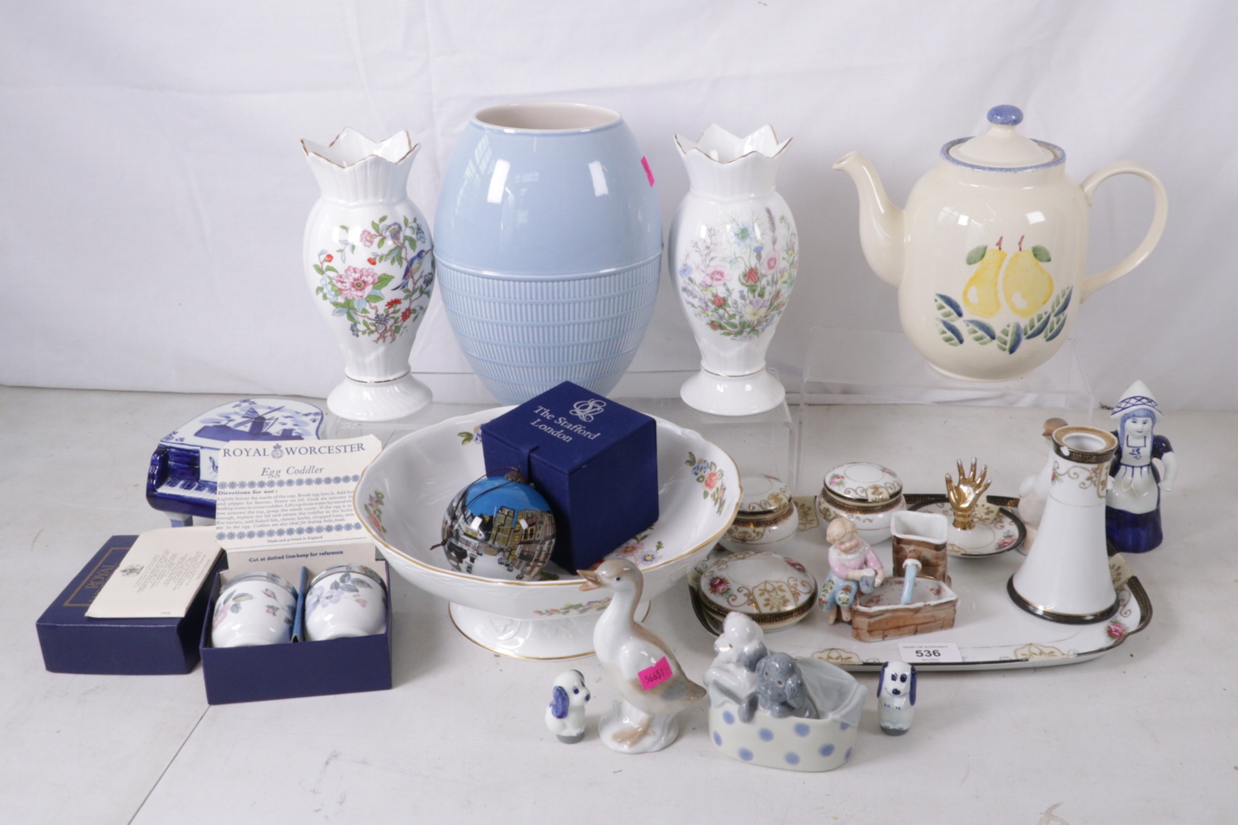 Pair of Aynsley vases Wedgewood vase, Noritake dressing table set, poole pottery teapot, etc