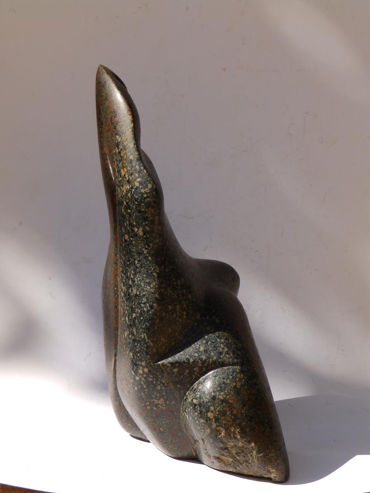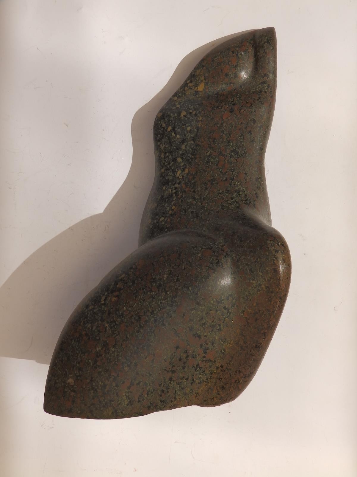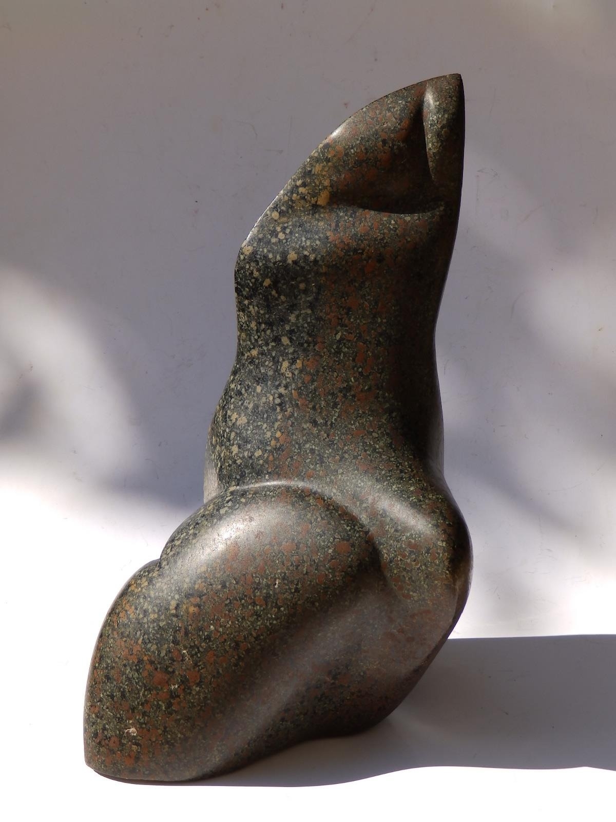 Joanne Reeve (1947-2017) - Polyphant abstract sulpture - 'Seated Woman', 12.5" high, together with South West Academy 2003 Open Exhibition catalogue , showing the sculpture's inclusion.