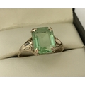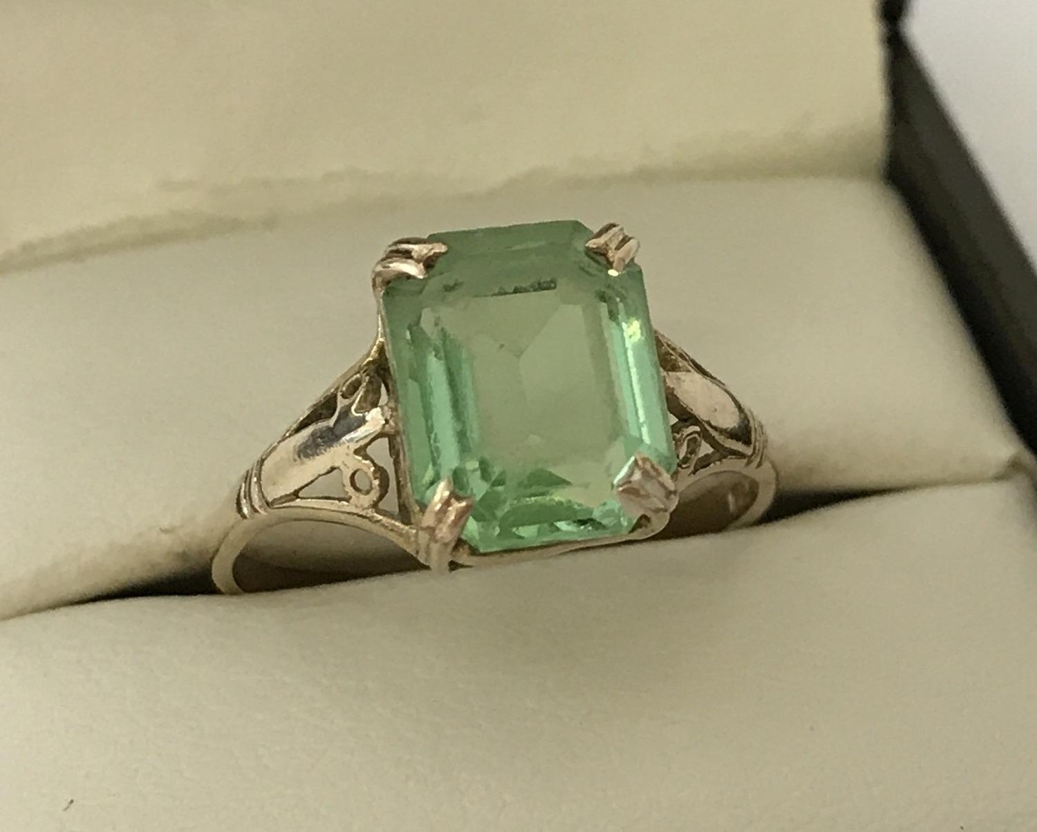 A 9ct gold dress ring, set with a octagon cut light green stone. Ring size O. Total weight approx. 2.1g.