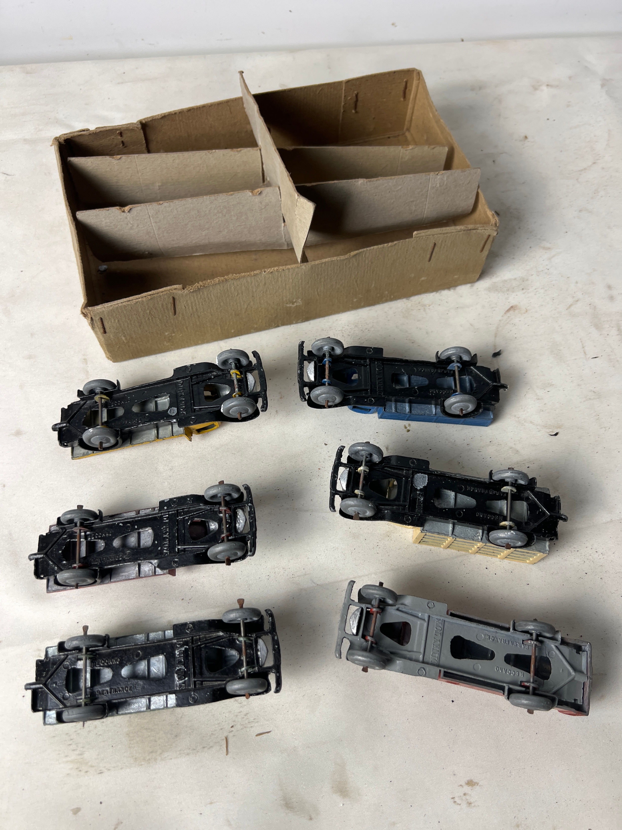 Set of 6 No25 French Meccano Dinky toy die cast vehicles with original box