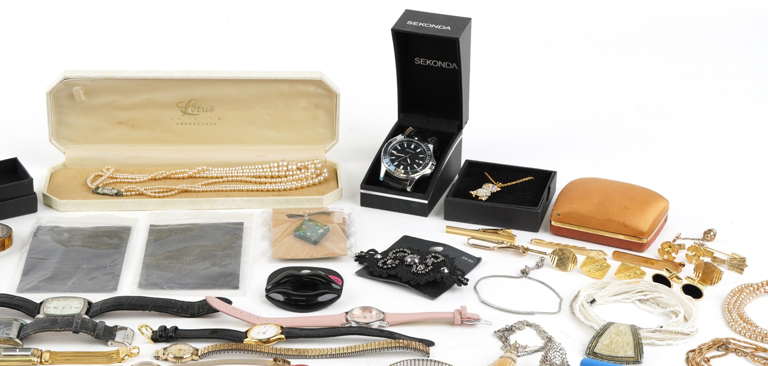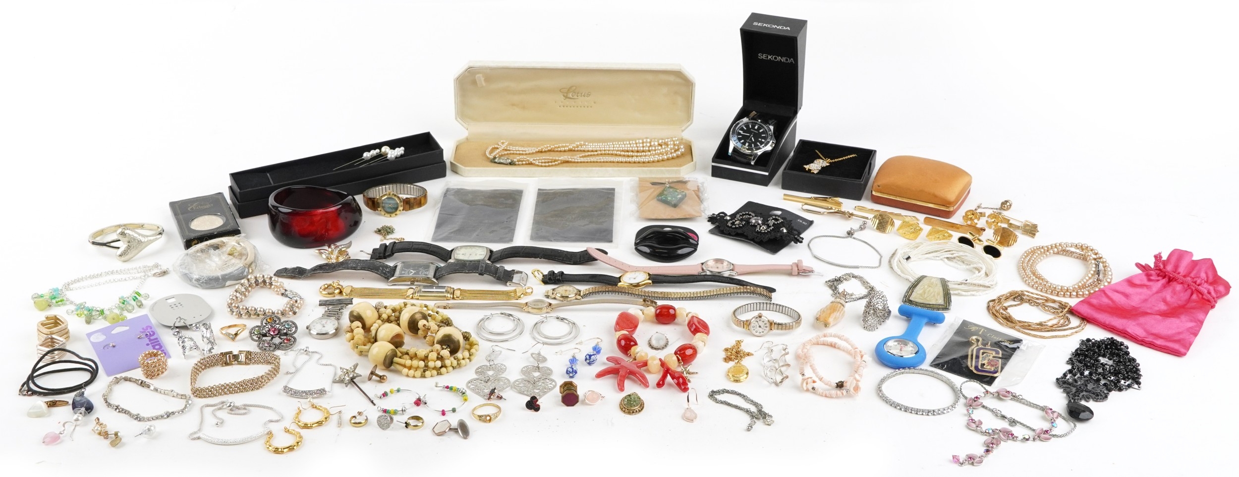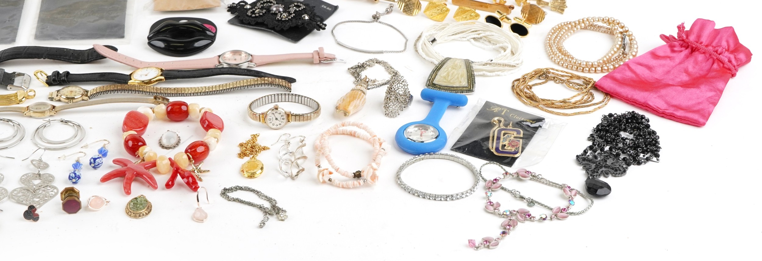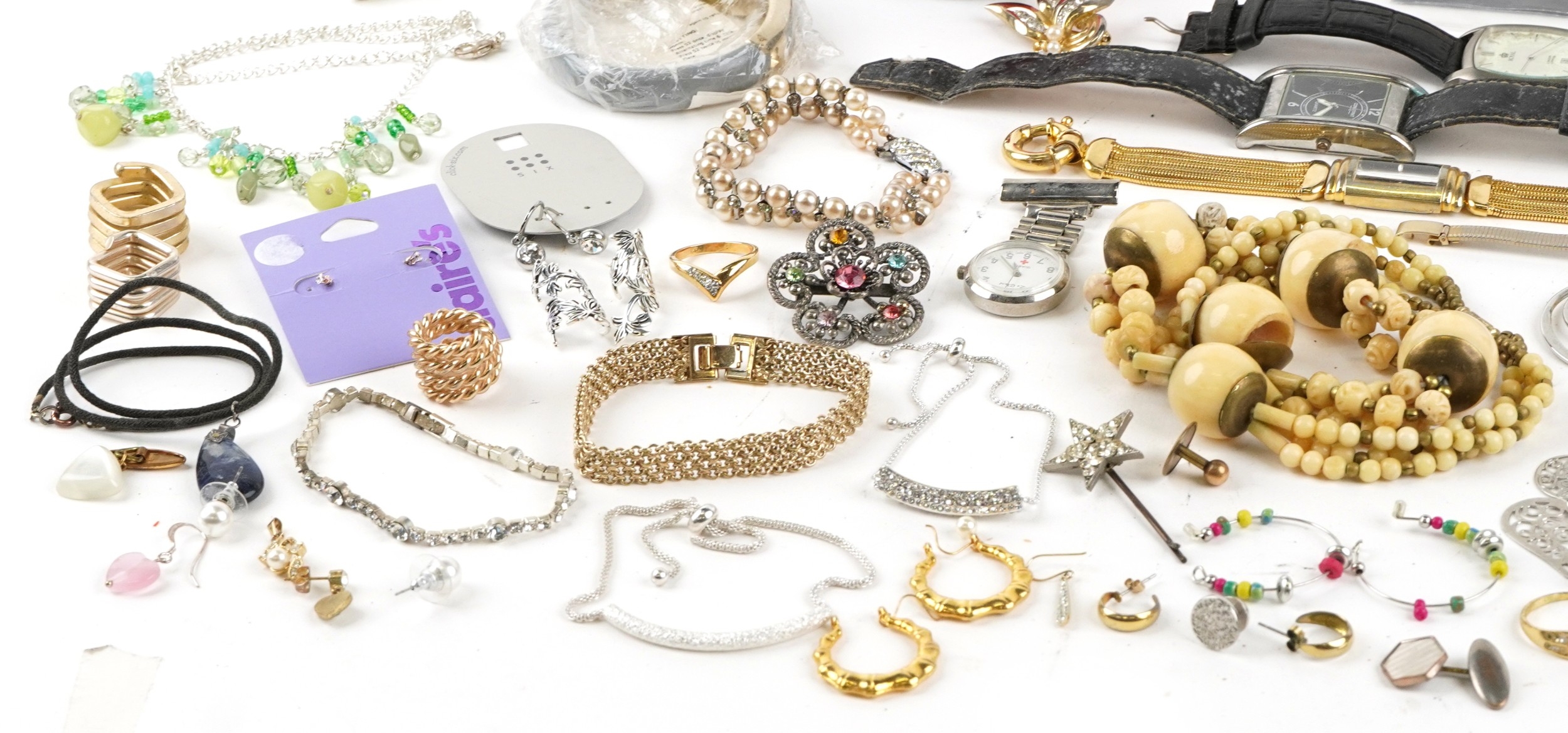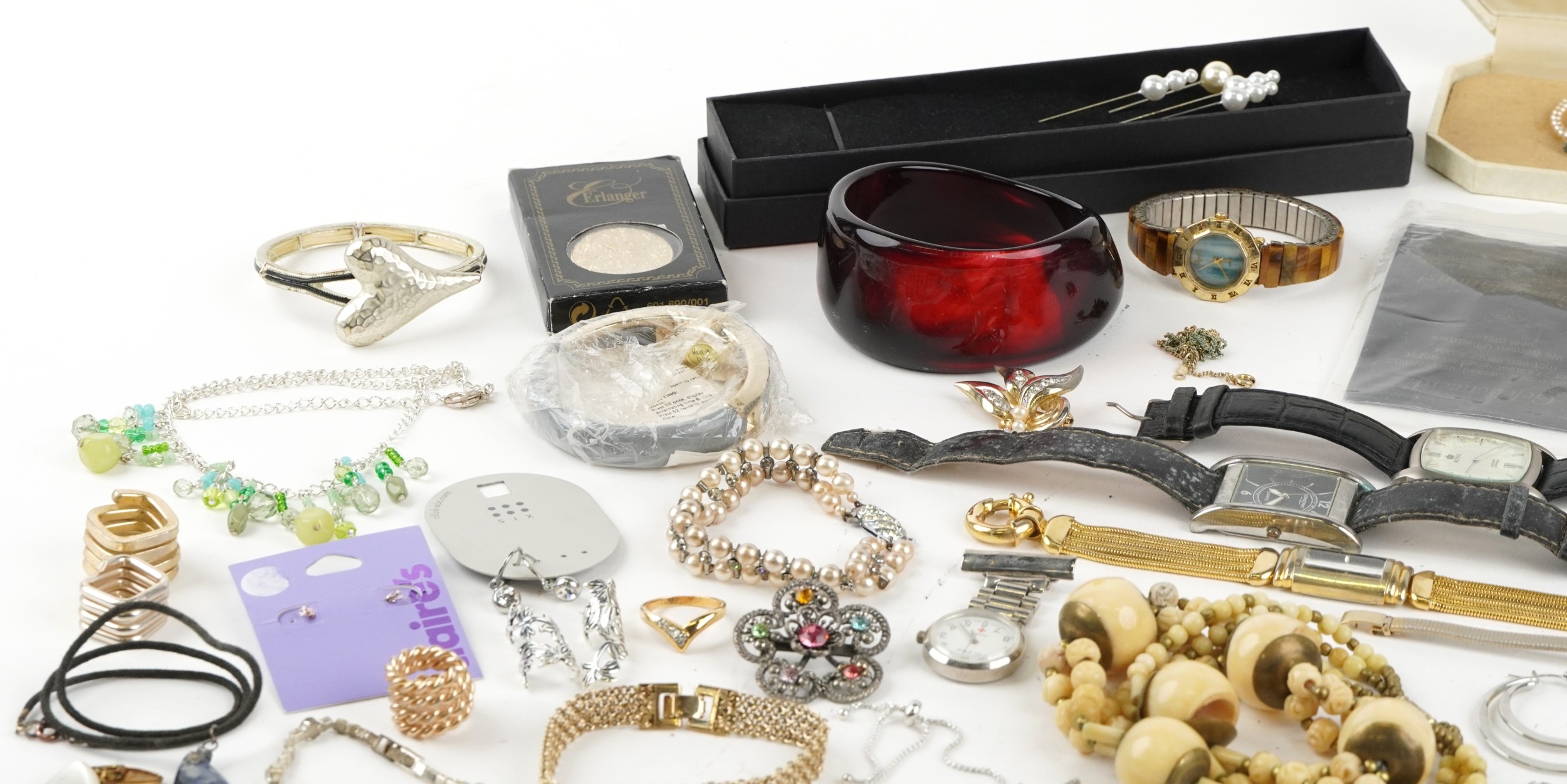Vintage and later costume jewellery and wristwatches including necklaces, brooches and earrings.