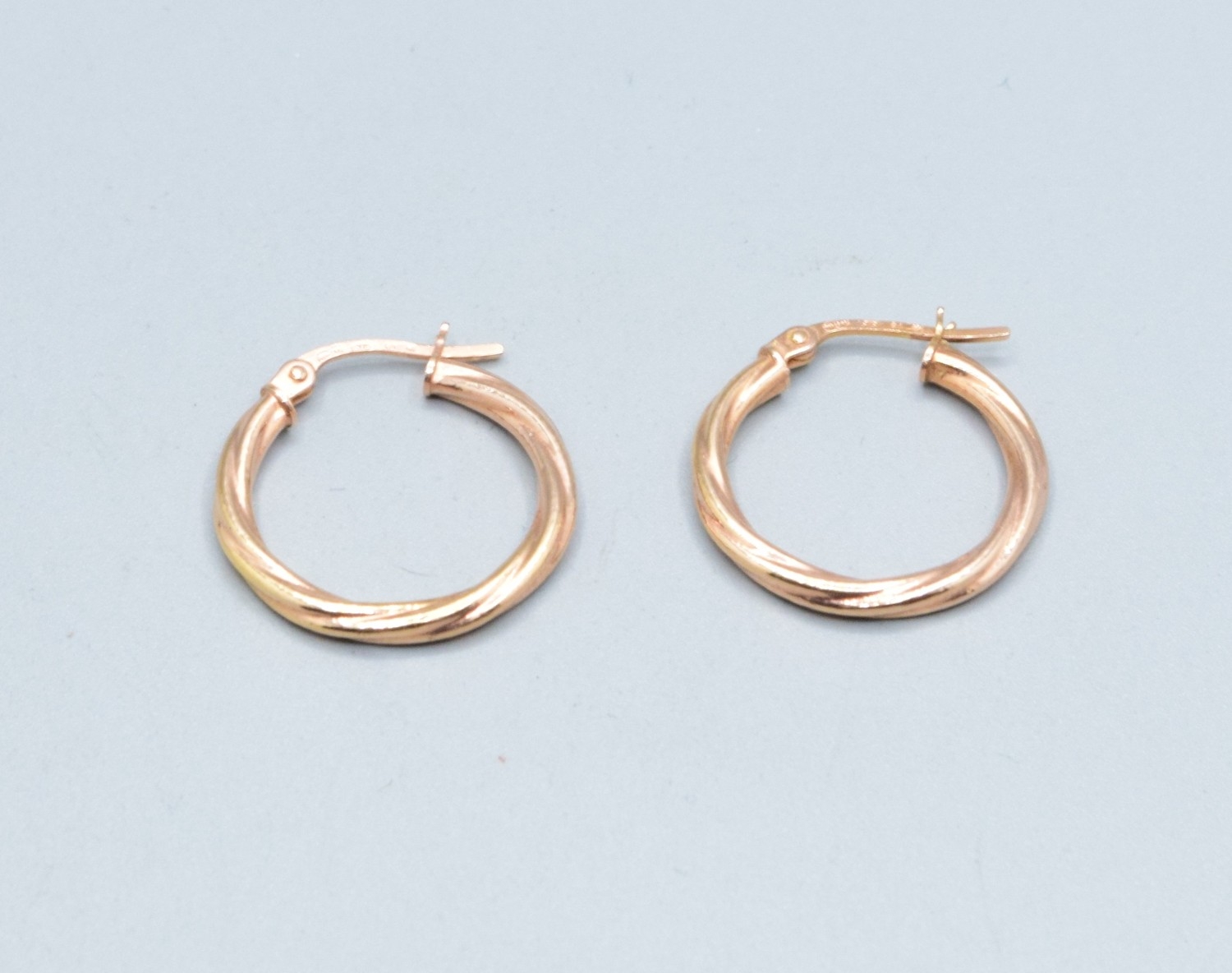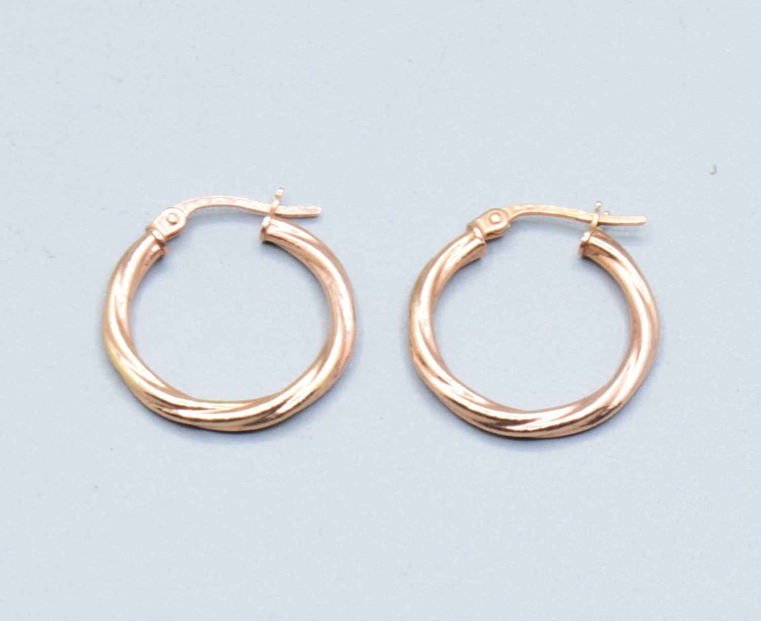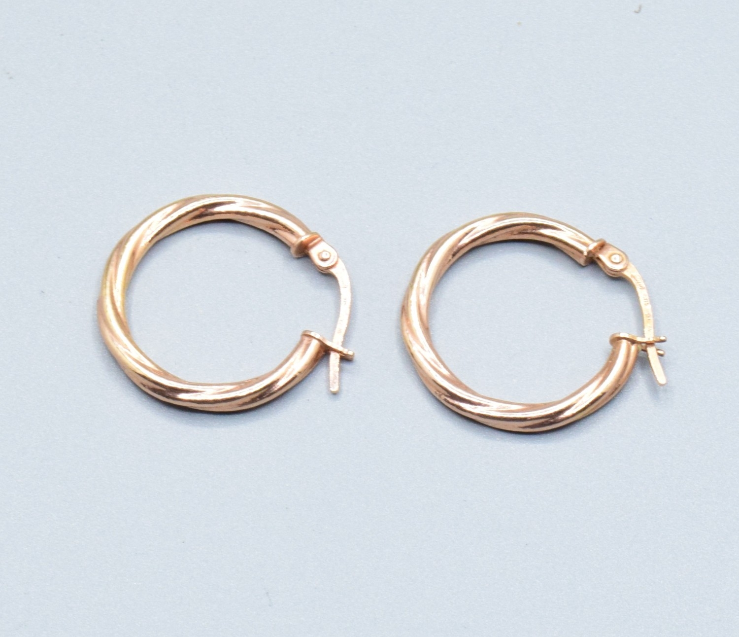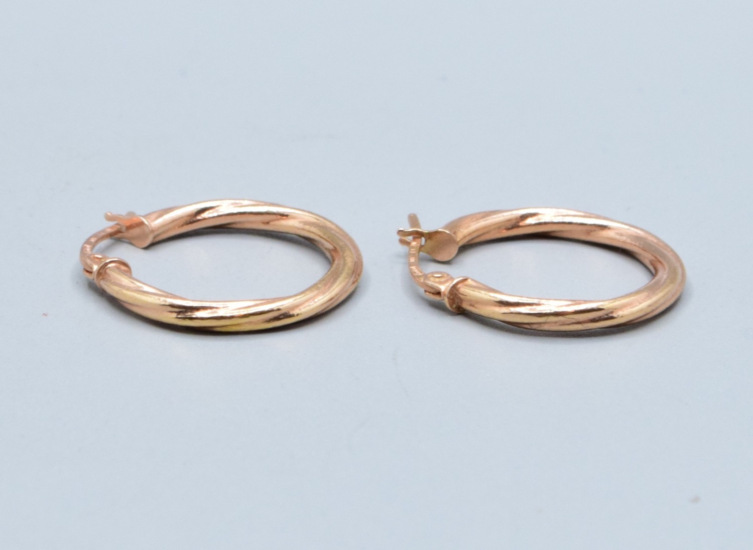 Pair 9ct gold ladies twist hoop earrings 2.0cm drop diameter