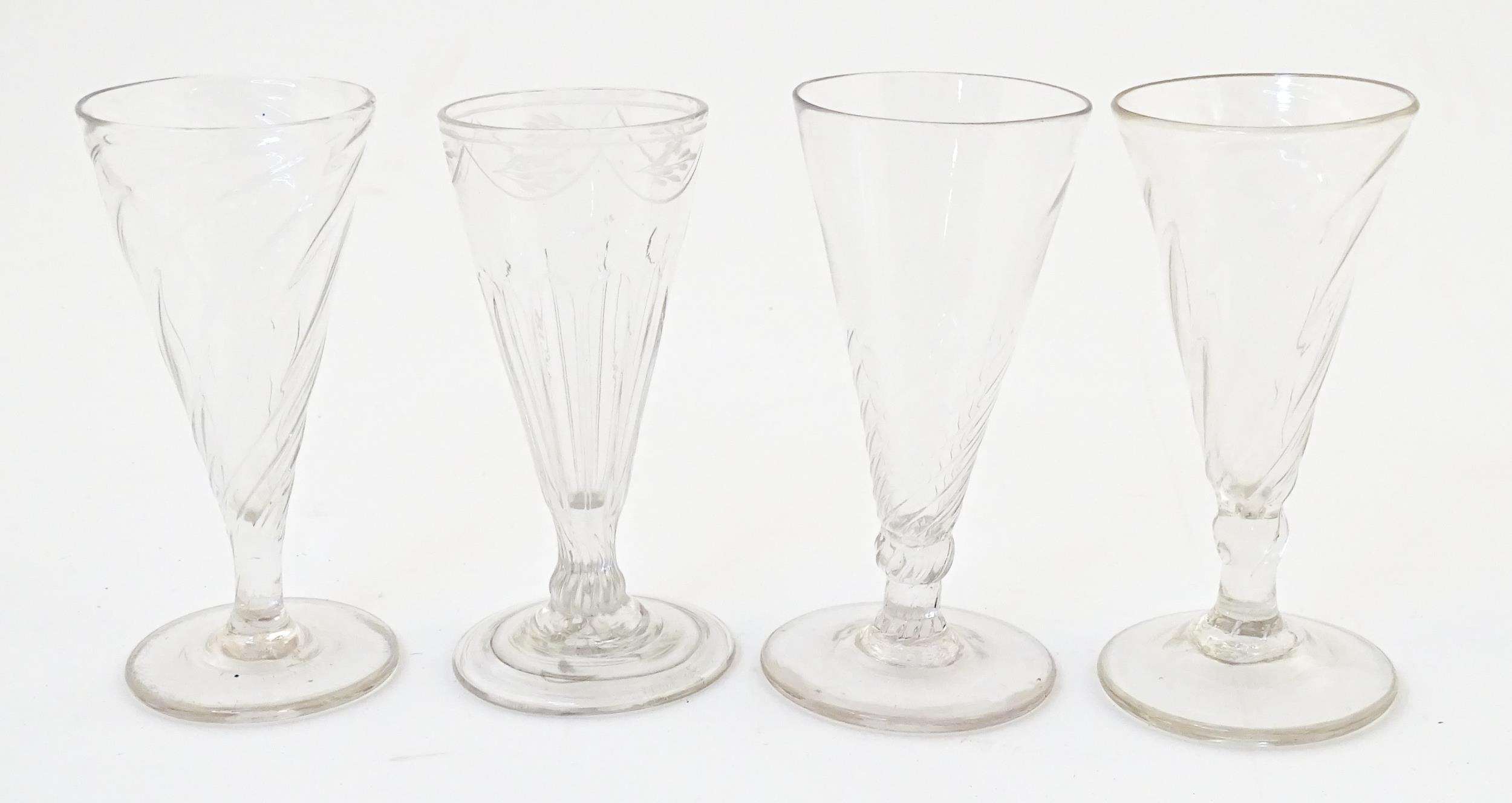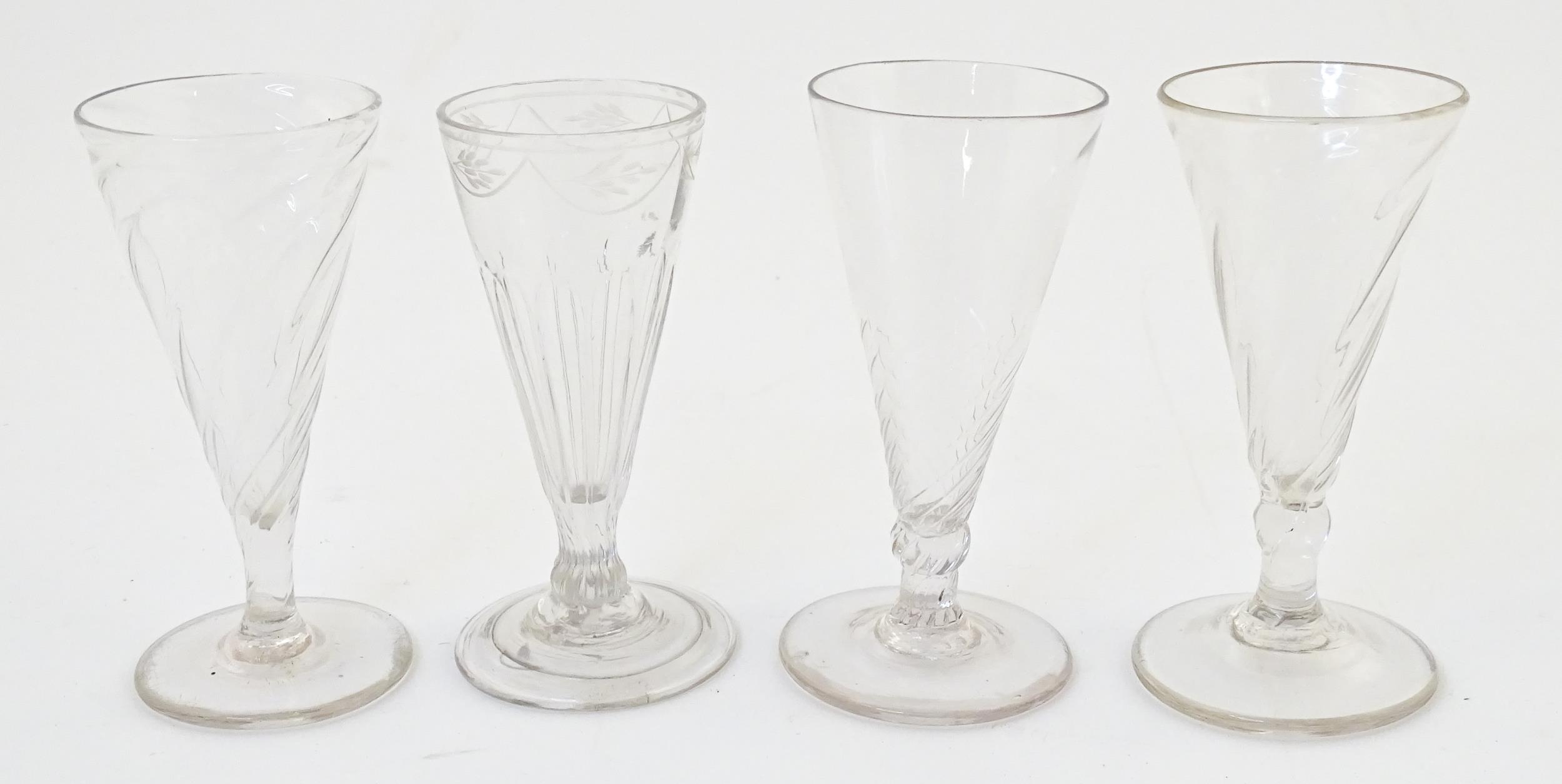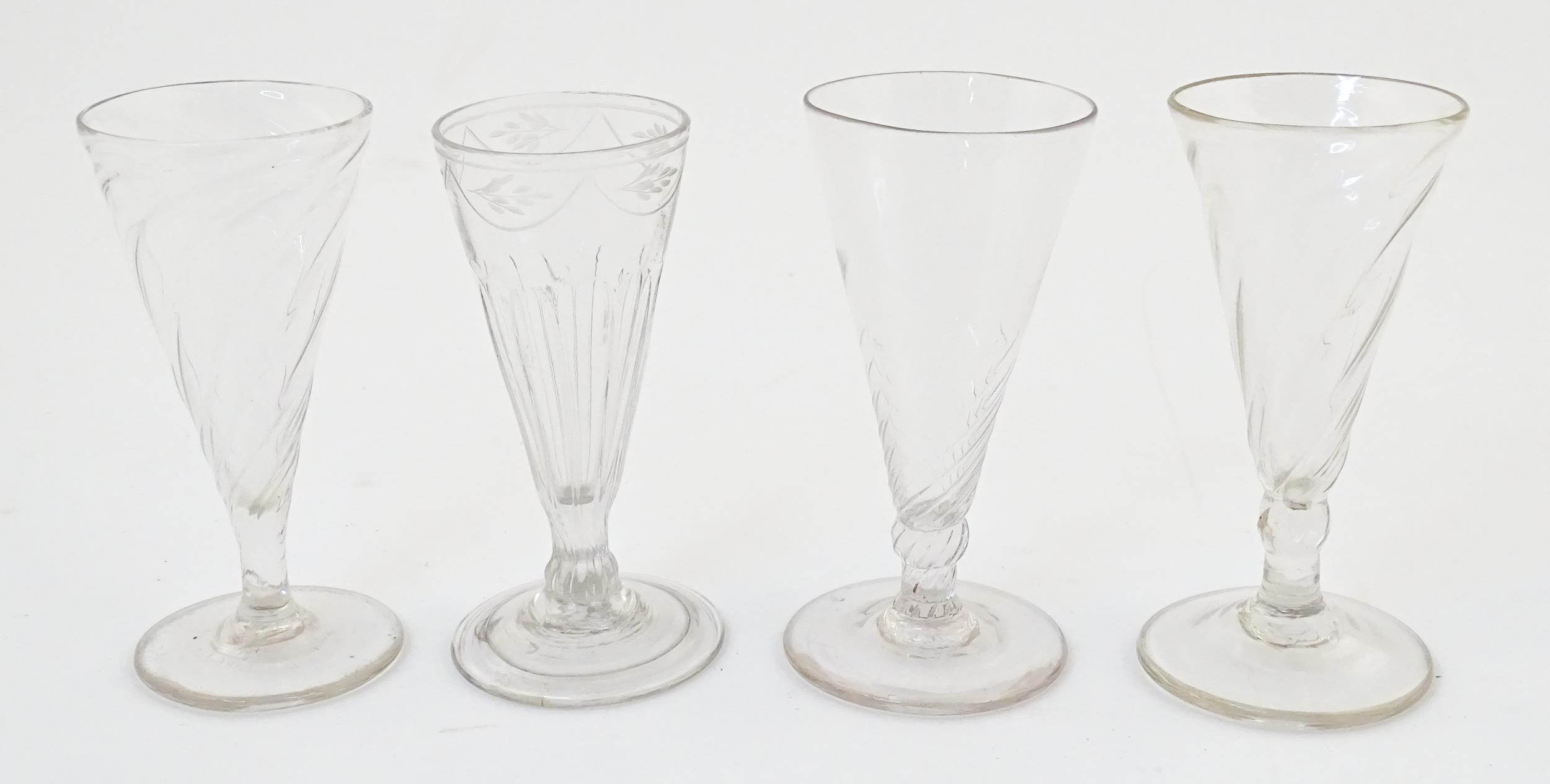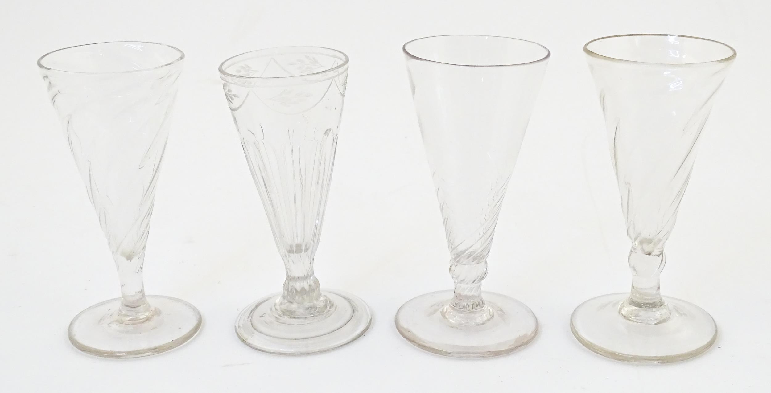 Four 18thC and later dwarf ale glasses. Approx. 5" high (4)