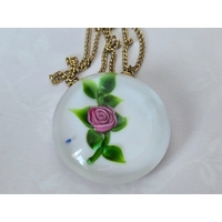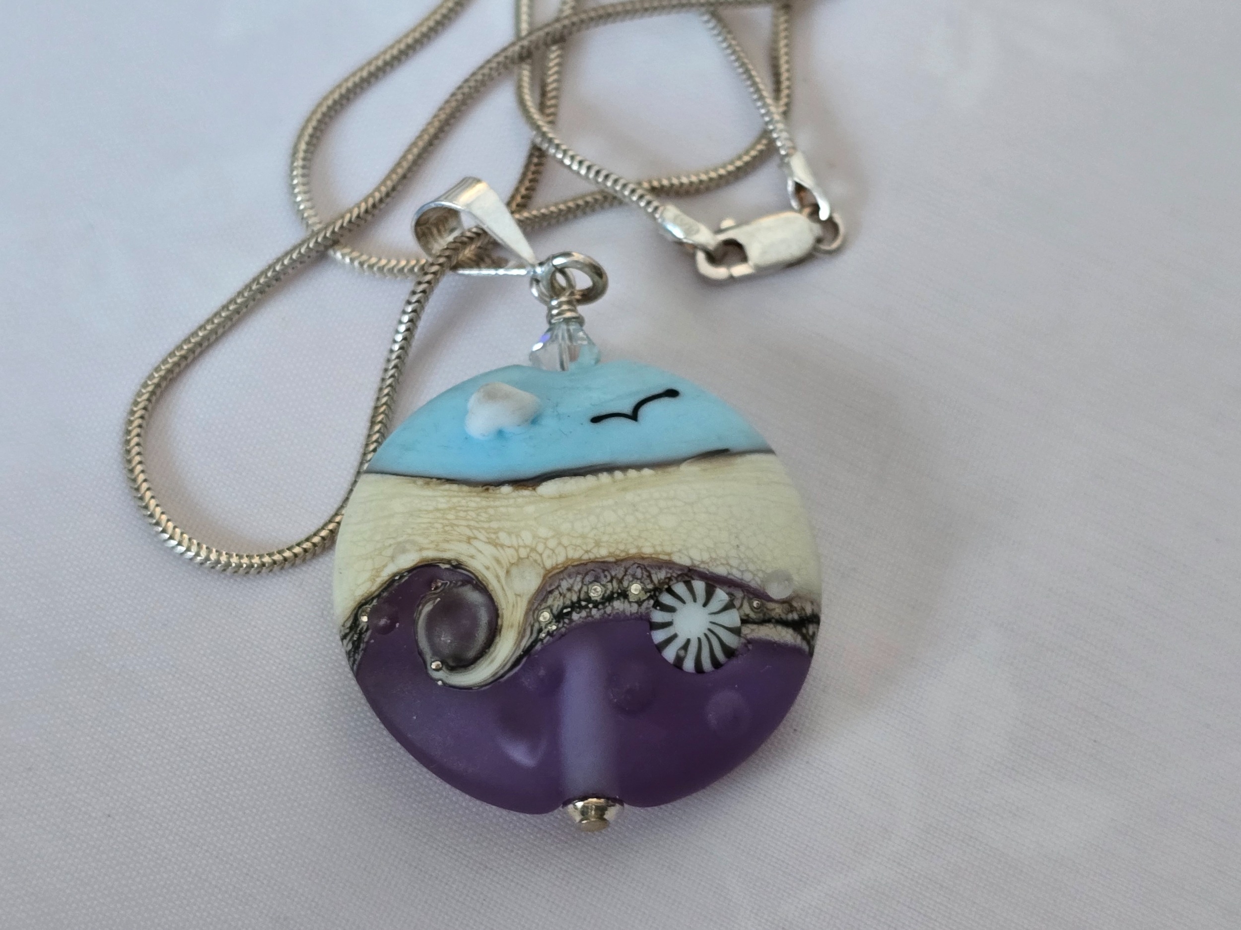 Pendant/necklace Paperweight glass jewellery/jewelry. "Seaside & Seagull" by The Tartain Trout. Plus chain. Hand-made in Scotland. See photos. Excellent condition. 28mm across
