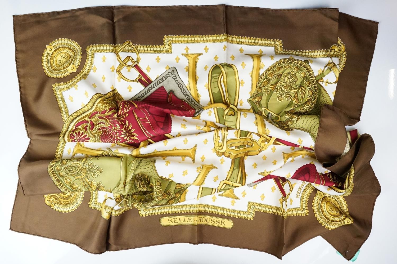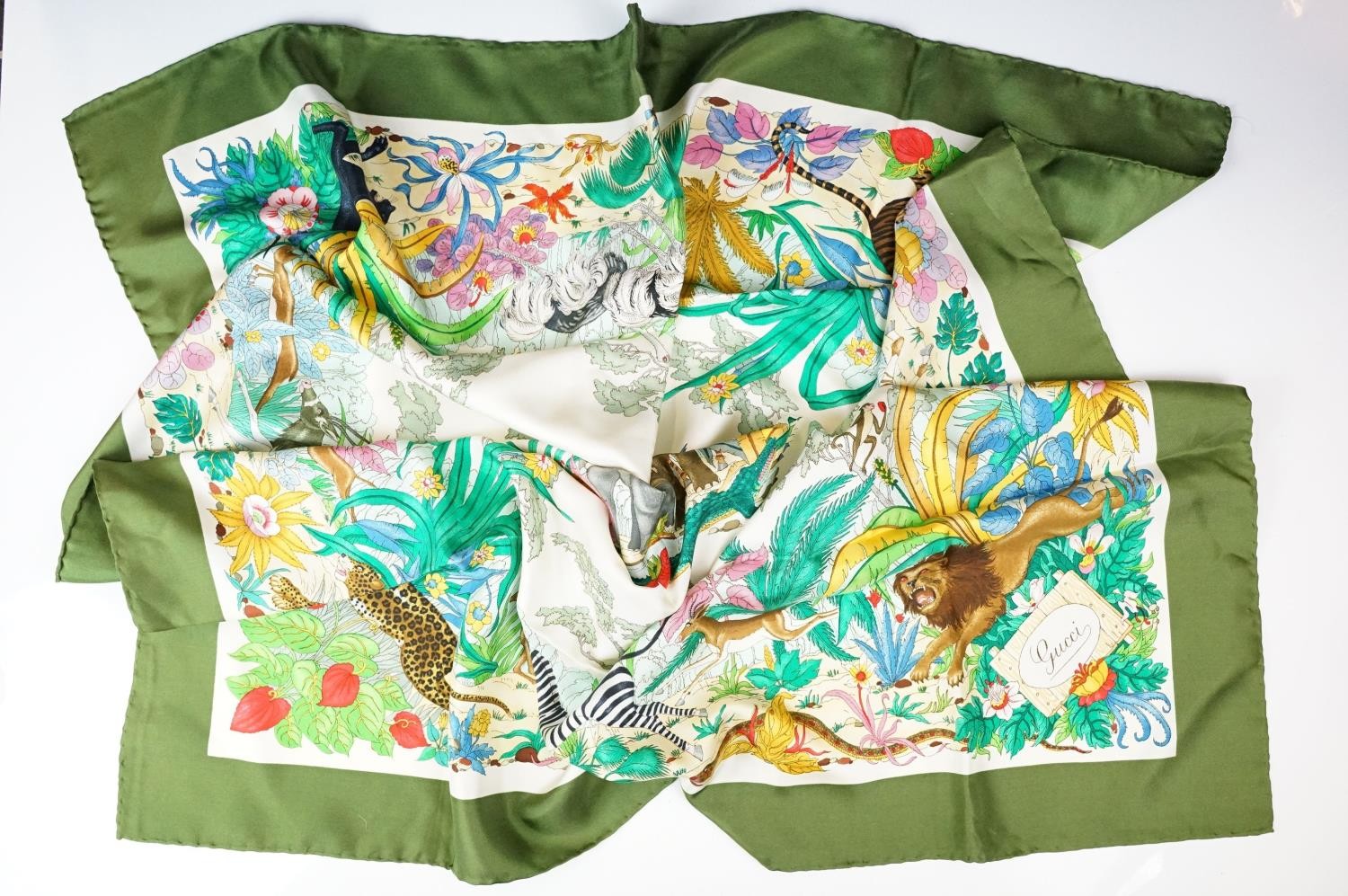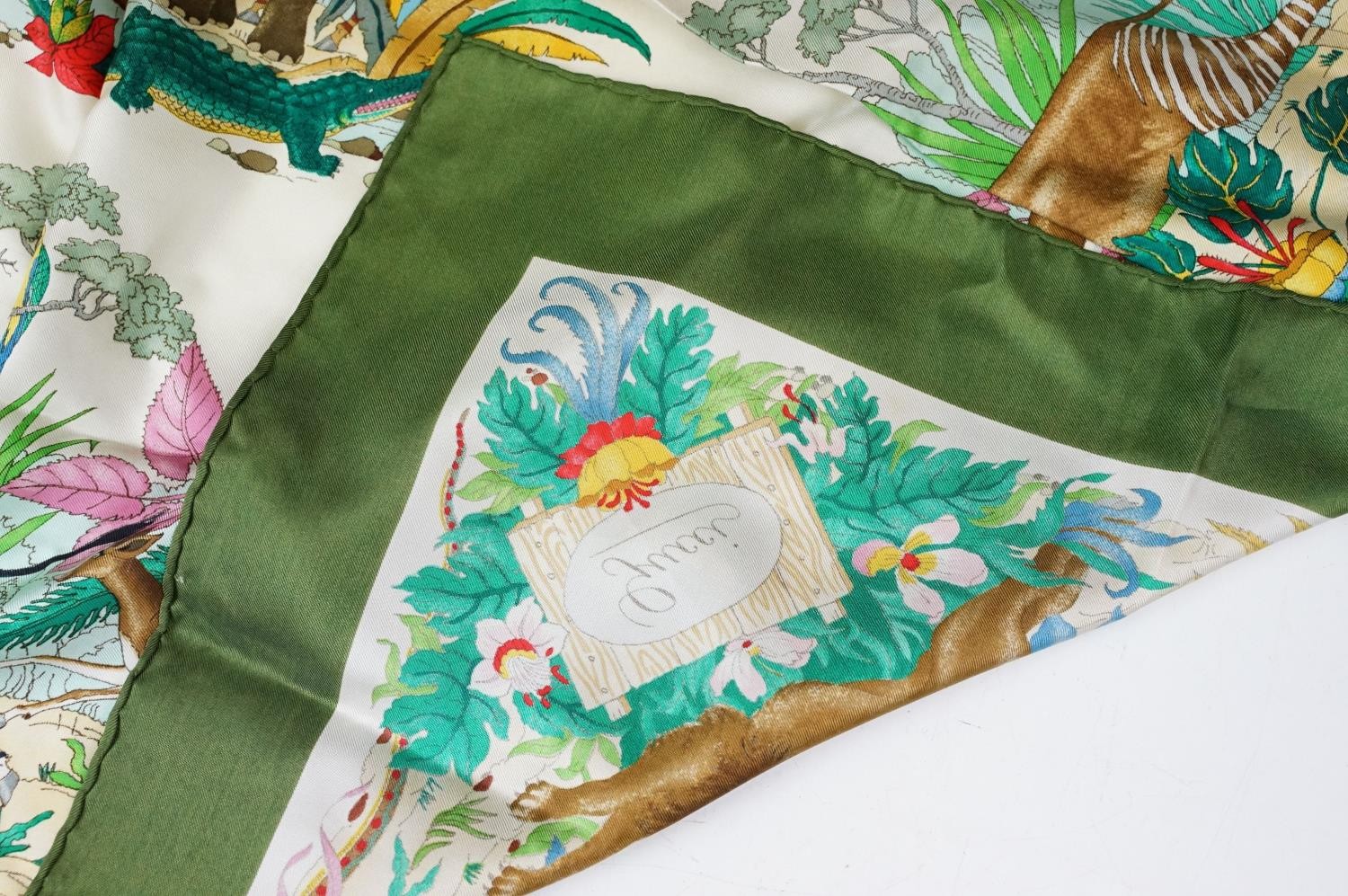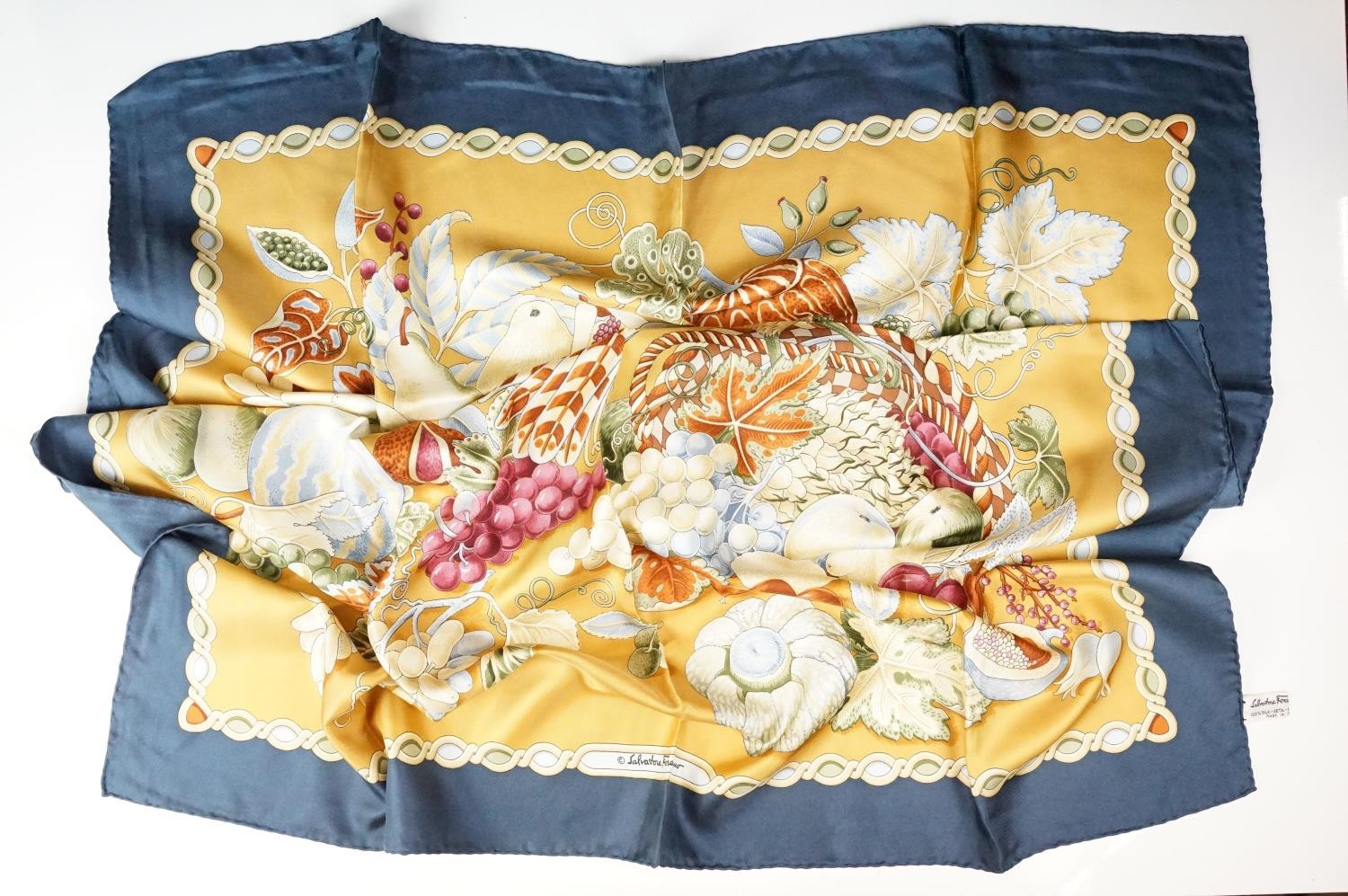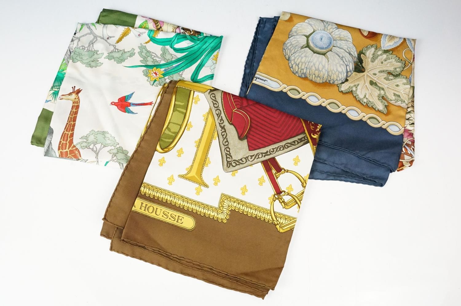 Collection of three vintage silk scarves, comprising: Gucci, Salvatore Ferragamo and Selles a Housse (3)