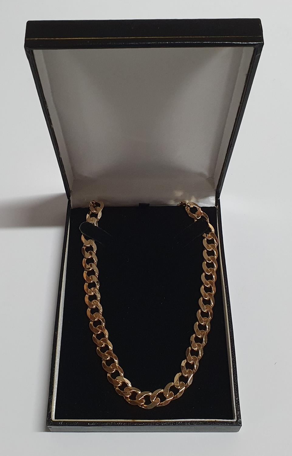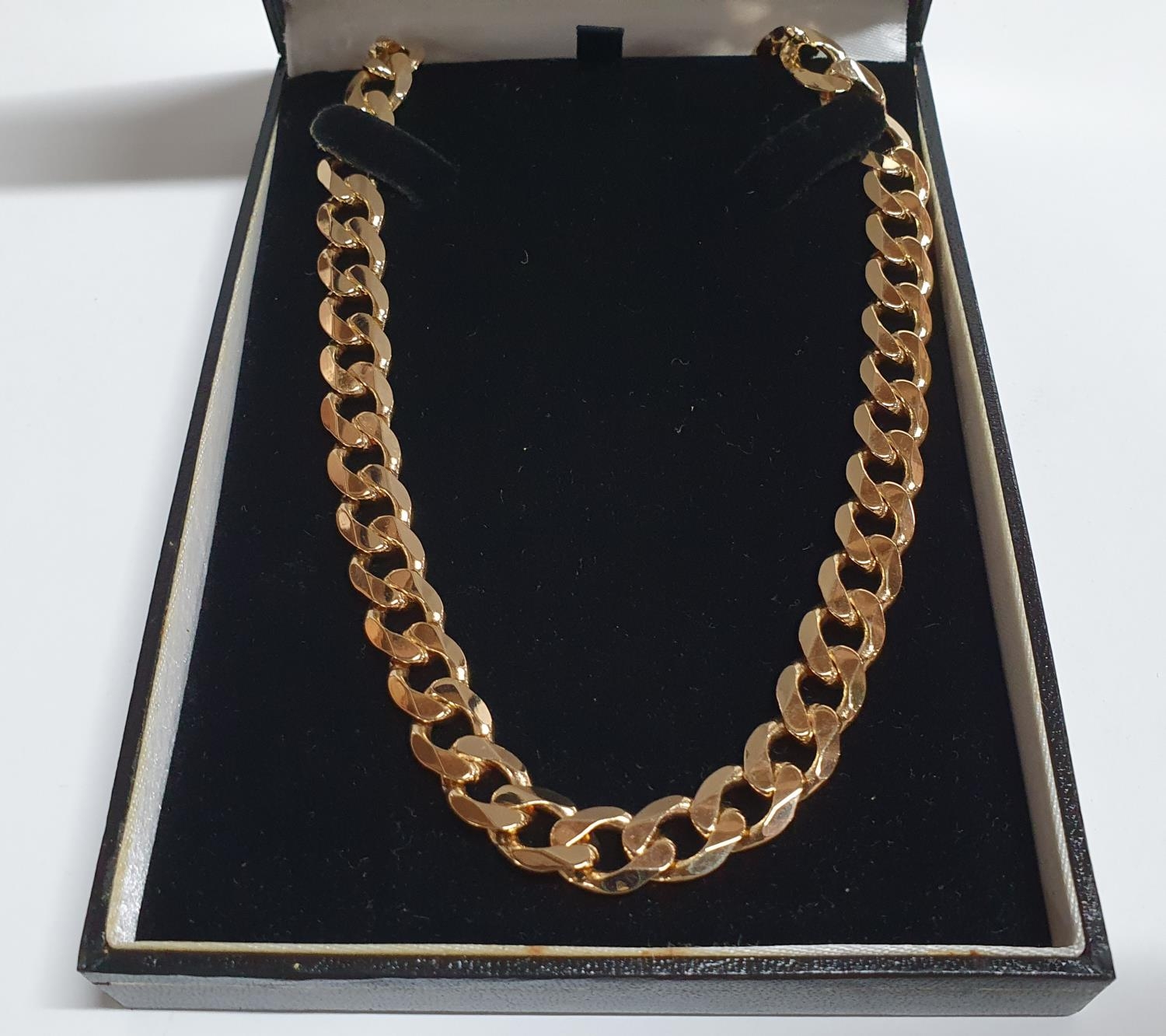 Gents 9ct yellow gold curb link necklace, 63.8 grams 50 cm long