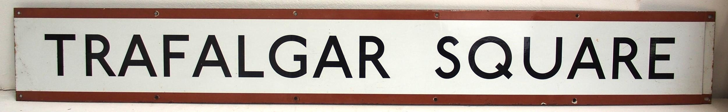 London Underground Bakerloo Line station enamel frieze "TRAFALGAR SQUARE" 67"x 9", the station lost this name in 1979 becoming Charing Cross. (WC) (Dispatch by Mailboxes/Collect from Banbury Depot)