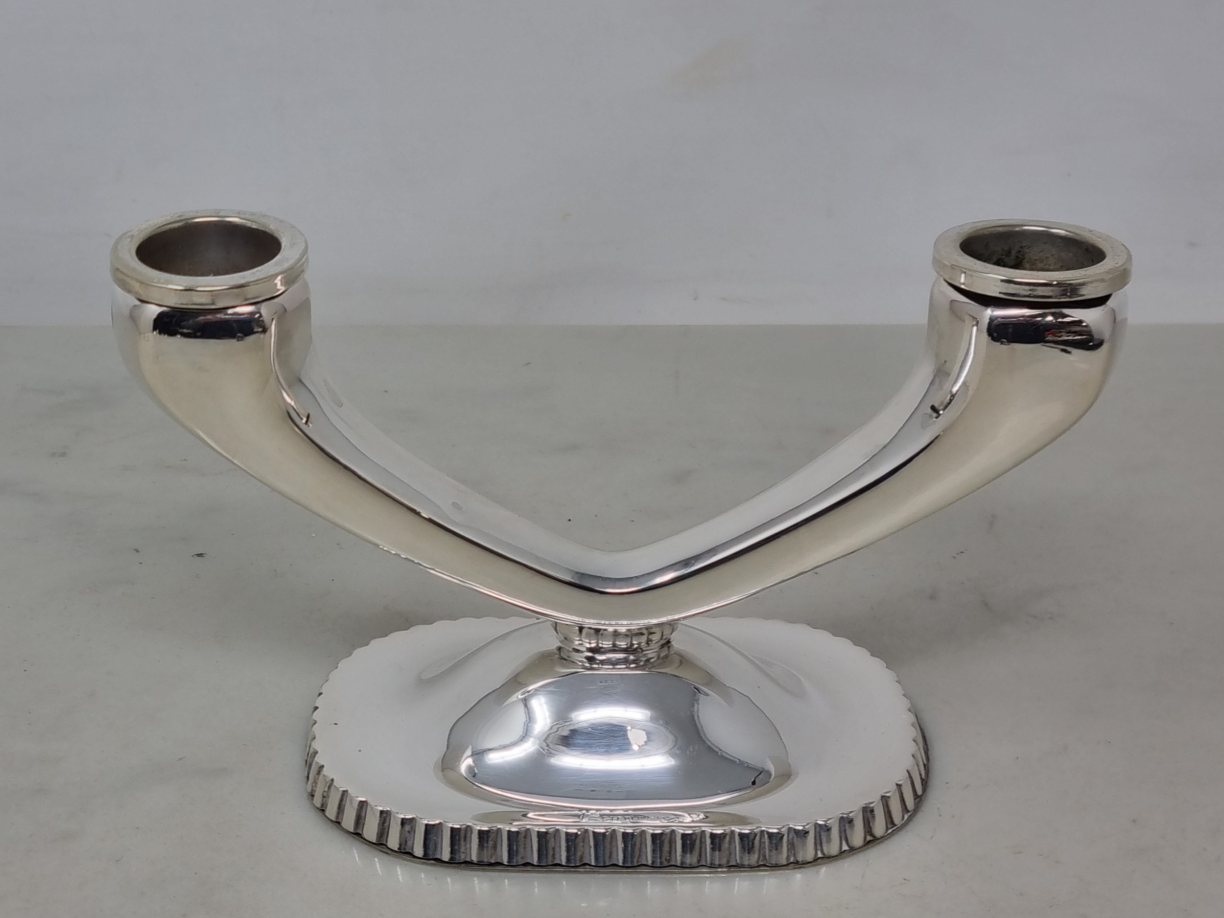 A sterling silver two branch Candlestick on oblong base