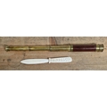A WW1 carved bone letter opener, 1918, C.H. Isle of Man together with a brass and wood miniature 3 draw telescope.