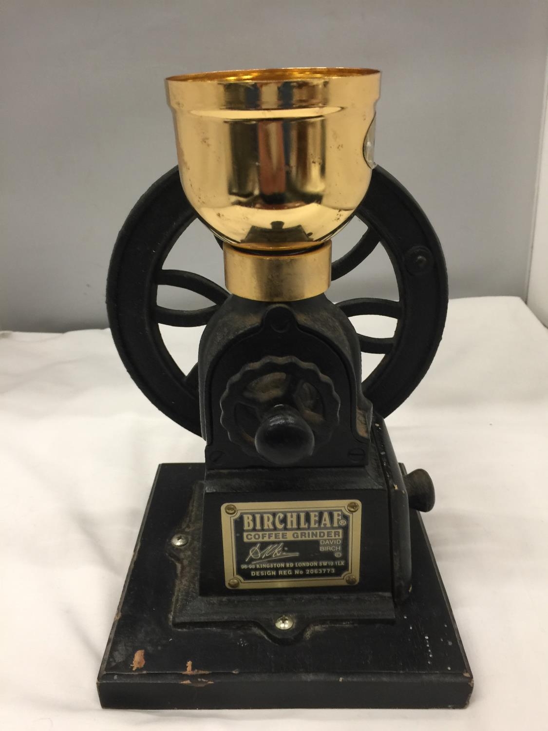 A HEAVY CAST BIRCHLEAF OF LONDON COFFEE GRINDER