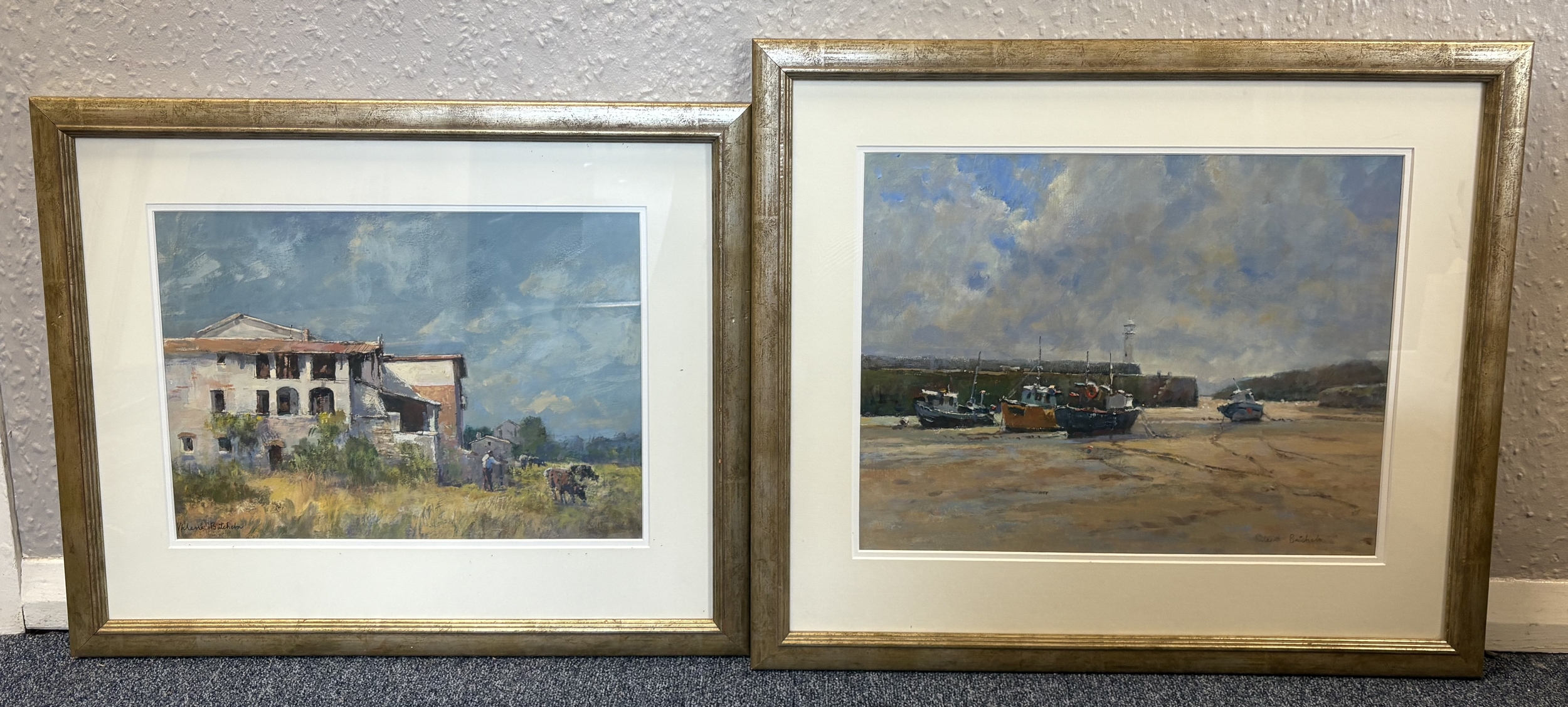 VALERIE BATCHELOR: (British, b. 1932): Two gilt framed and glazed watercolours. Signed. Approx. Est. £20 - £30.