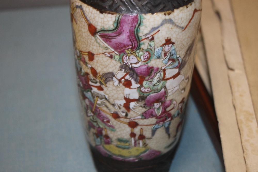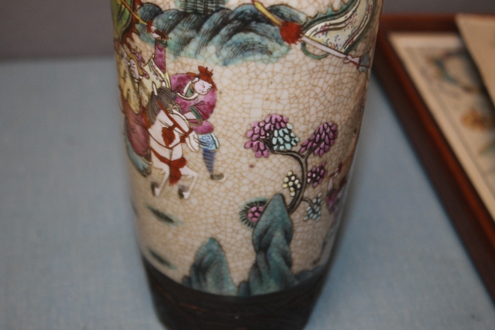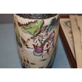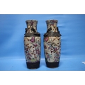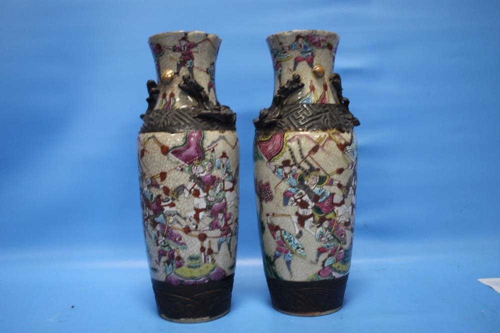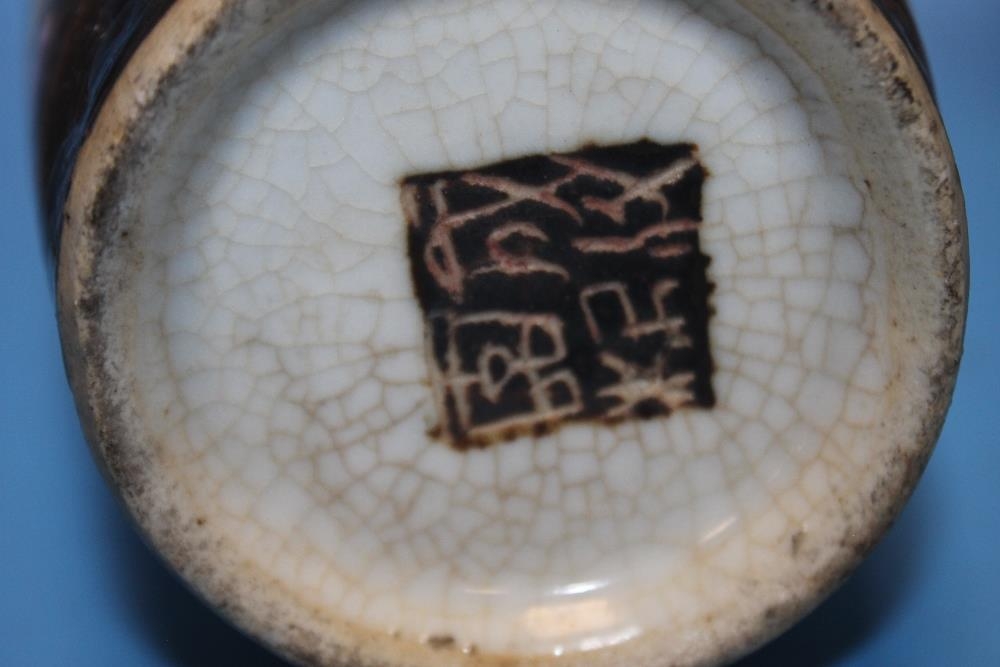 A PAIR OF ORIENTAL STYLE DECORATED VASES WITH MARKS TO BASE, HEIGHT APPROX. 26 CM