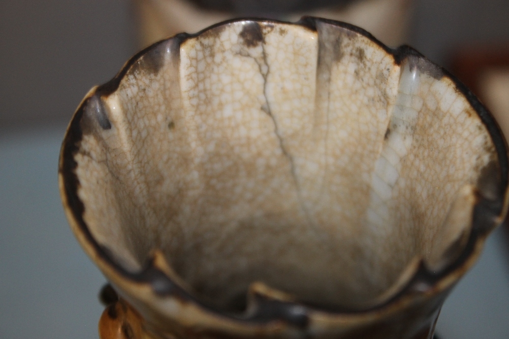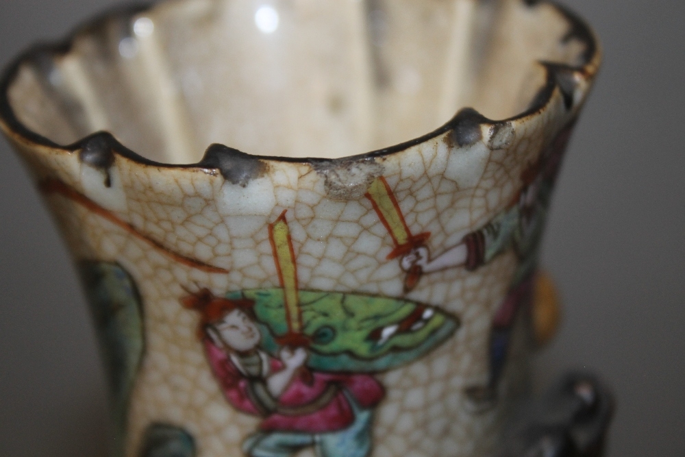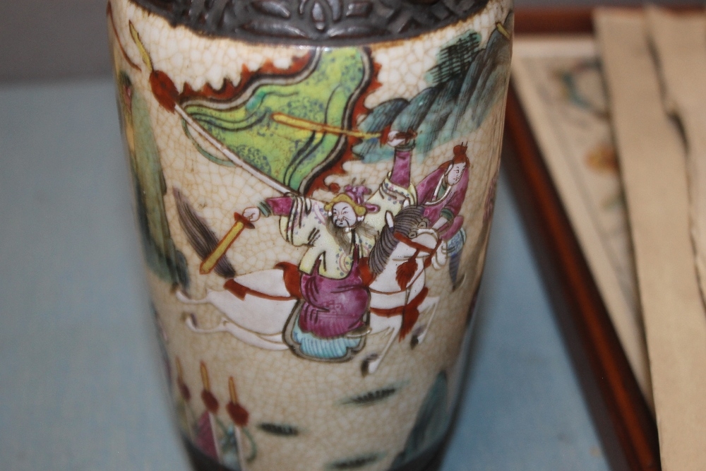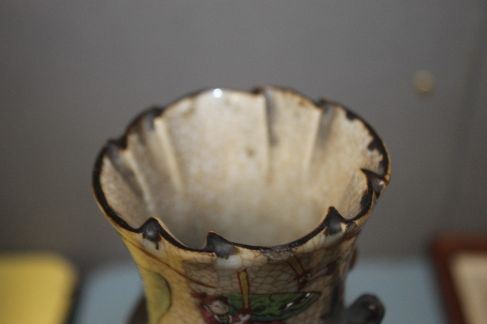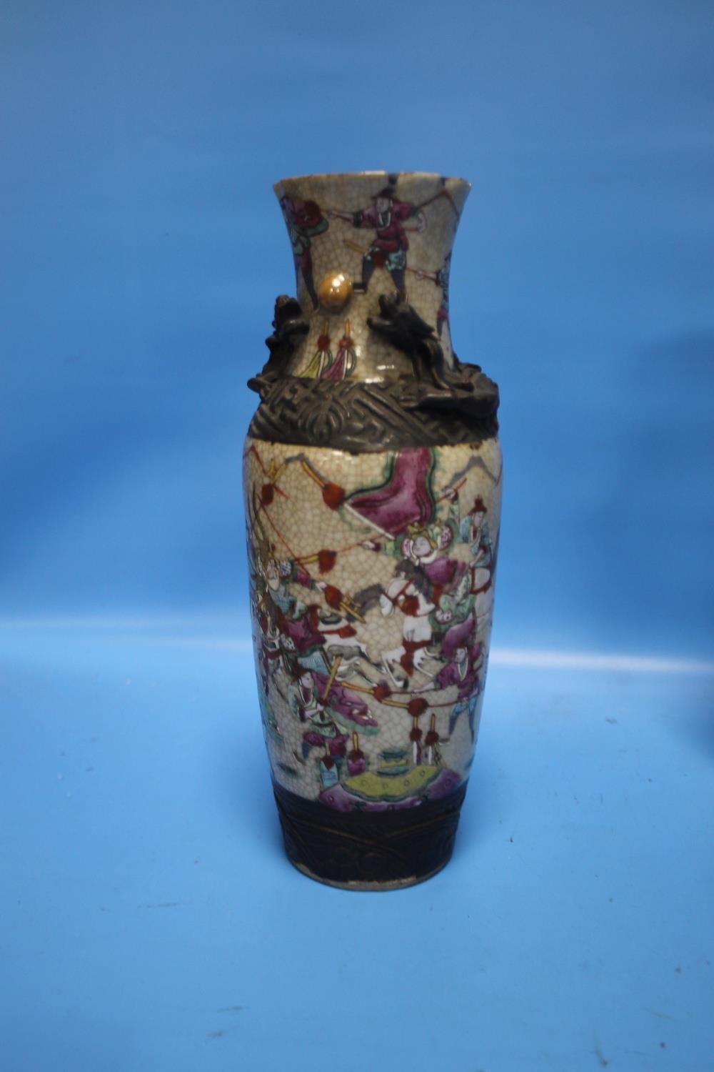 A PAIR OF ORIENTAL STYLE DECORATED VASES WITH MARKS TO BASE, HEIGHT APPROX. 26 CM