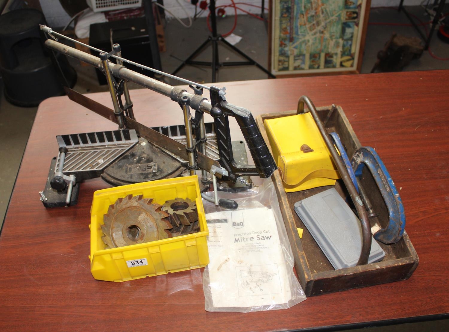 Qty of mixed tools to inc G-Clamps, mitre saw etc